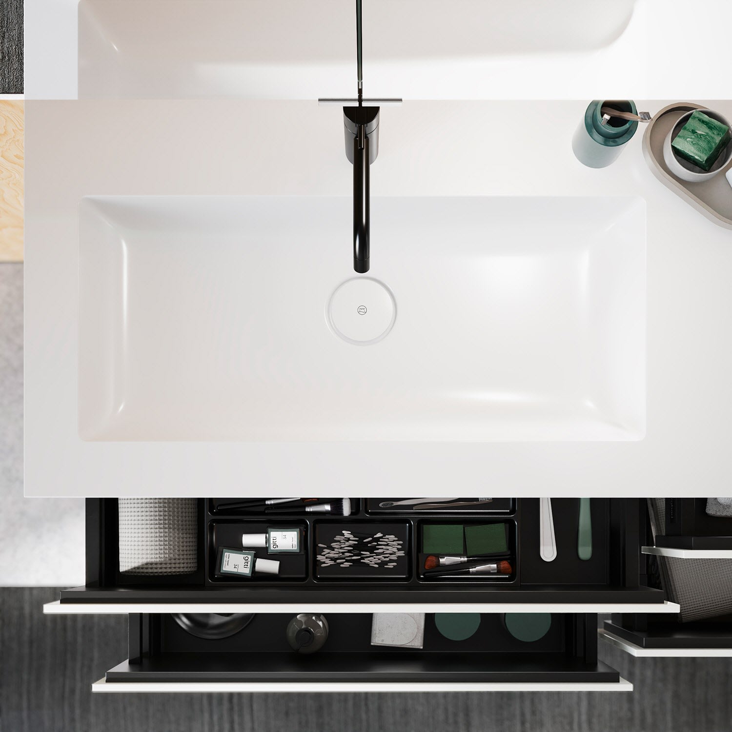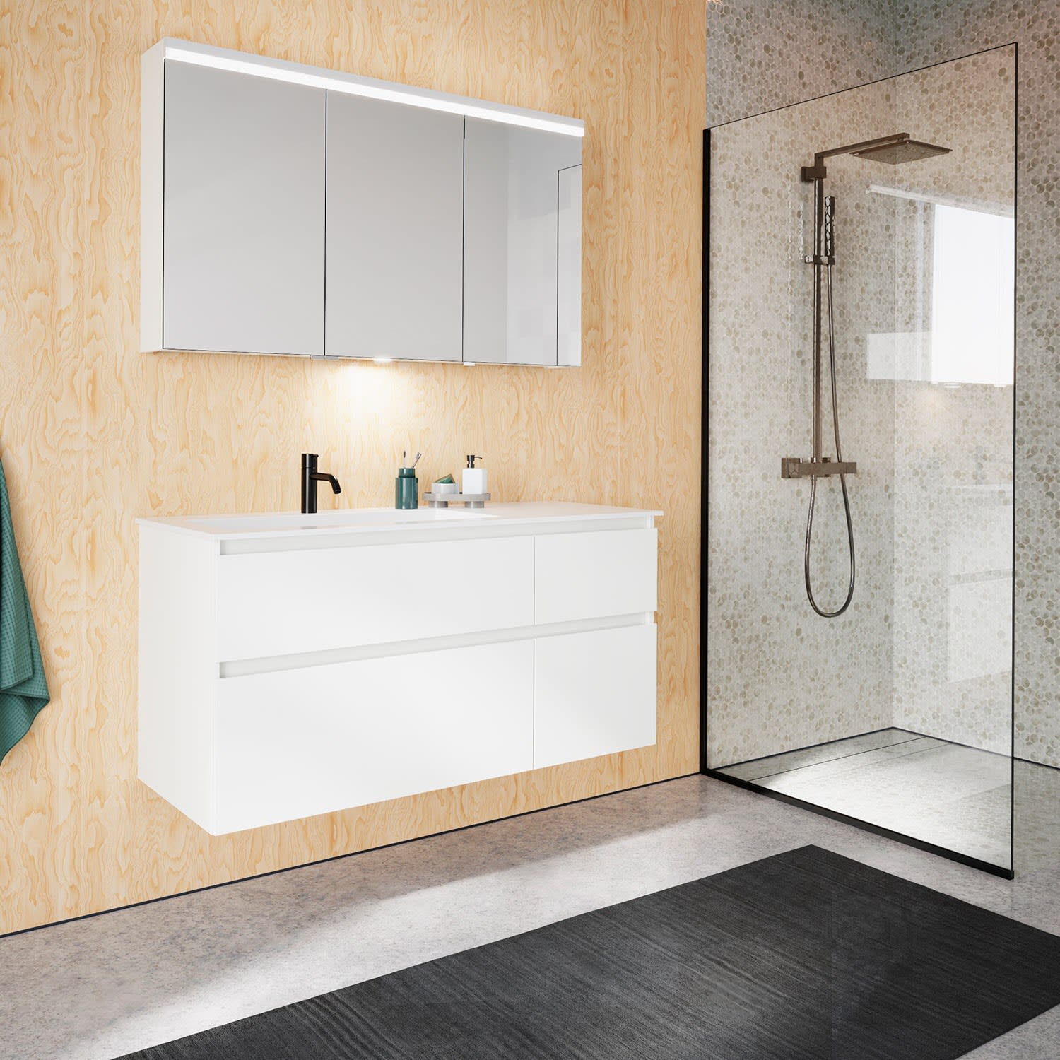 burgbad Lin20 Waschtischunterschrank mit Mineralguss-Waschtisch 122 cm, 4 Auszüge, links