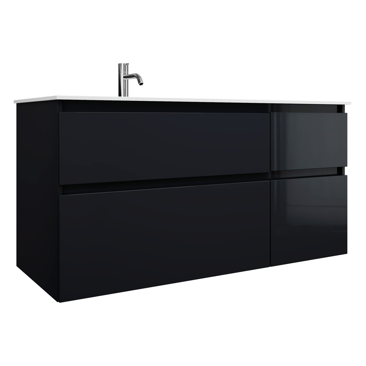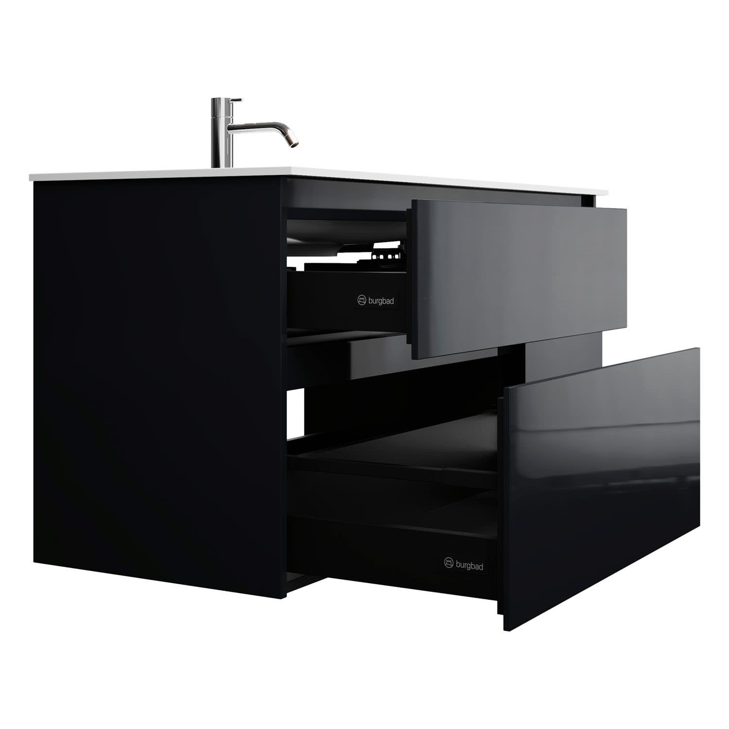 burgbad Lin20 Waschtischunterschrank mit Mineralguss-Waschtisch 122 cm, 4 Auszüge, links