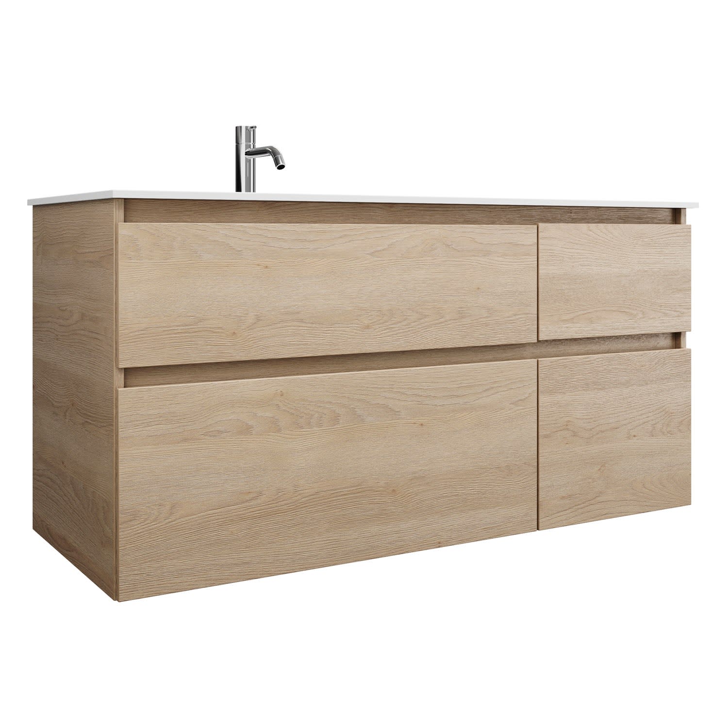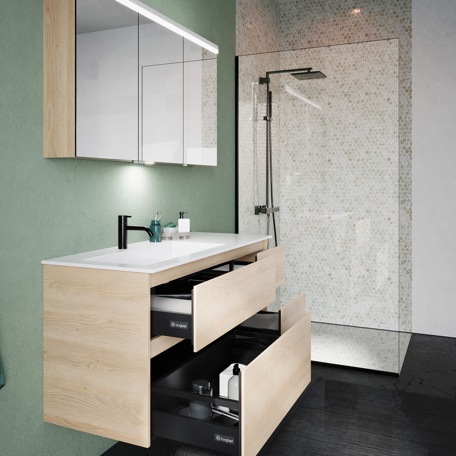 burgbad Lin20 Waschtischunterschrank mit Mineralguss-Waschtisch 122 cm, 4 Auszüge, links