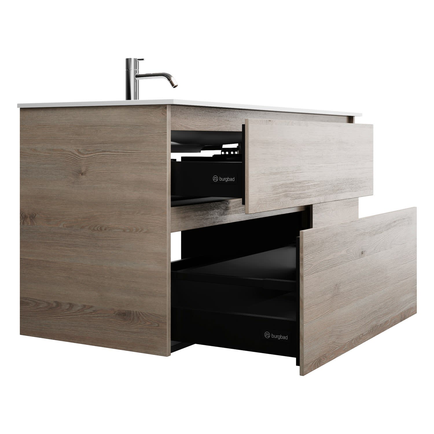 burgbad Lin20 Waschtischunterschrank mit Mineralguss-Waschtisch 122 cm, 4 Auszüge, links