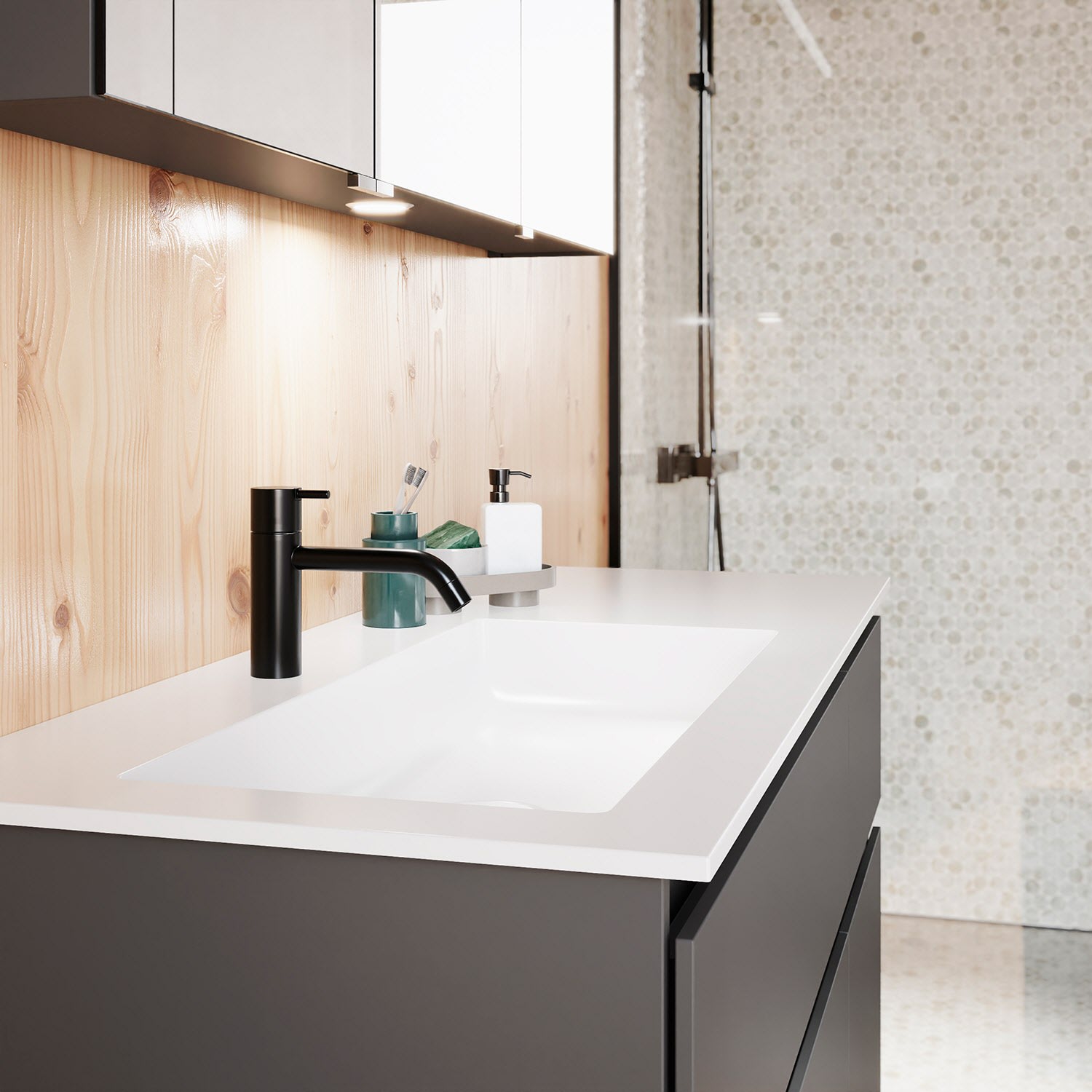 - homogene, geschlossene Oberfläche für leichte Pflege und Sauberkeit