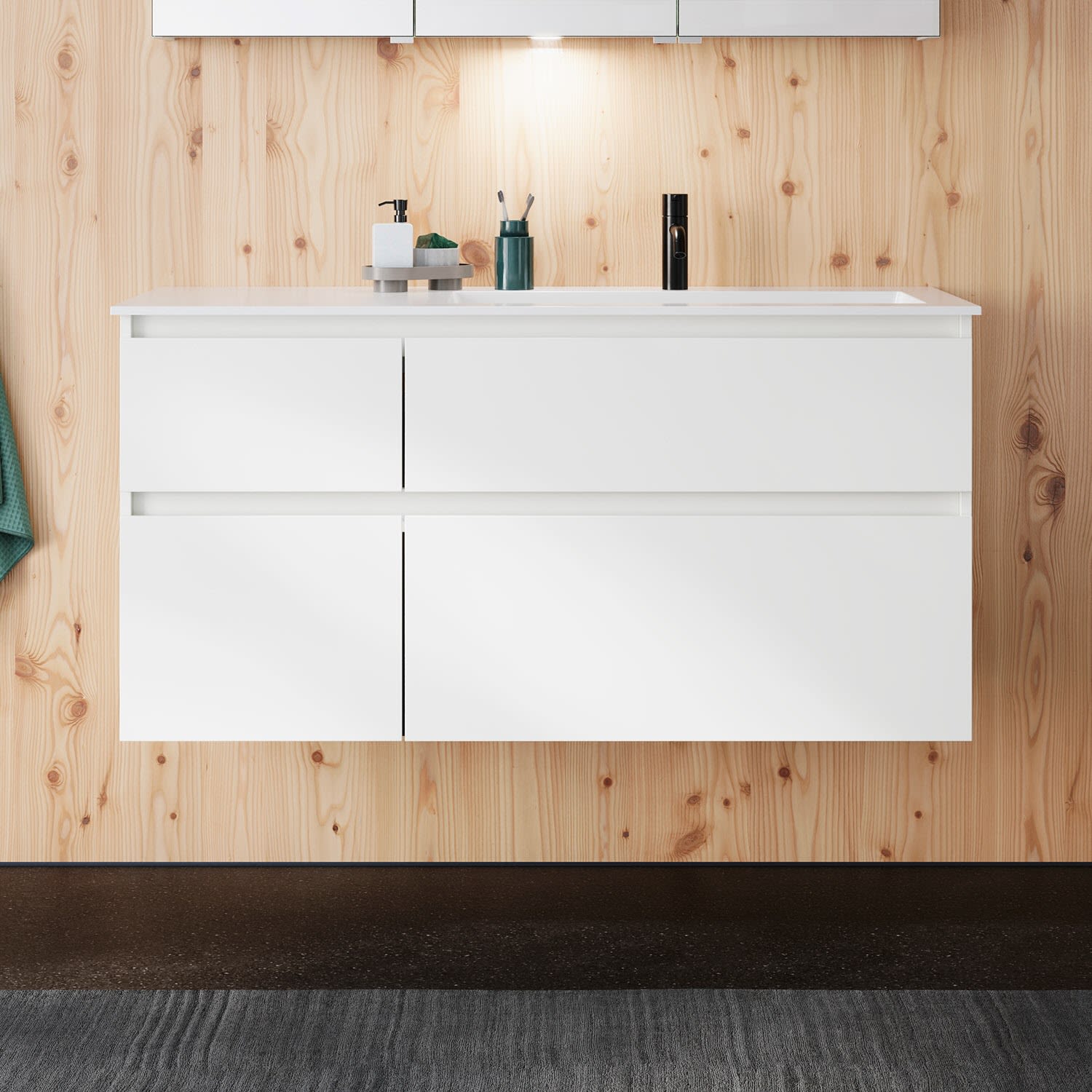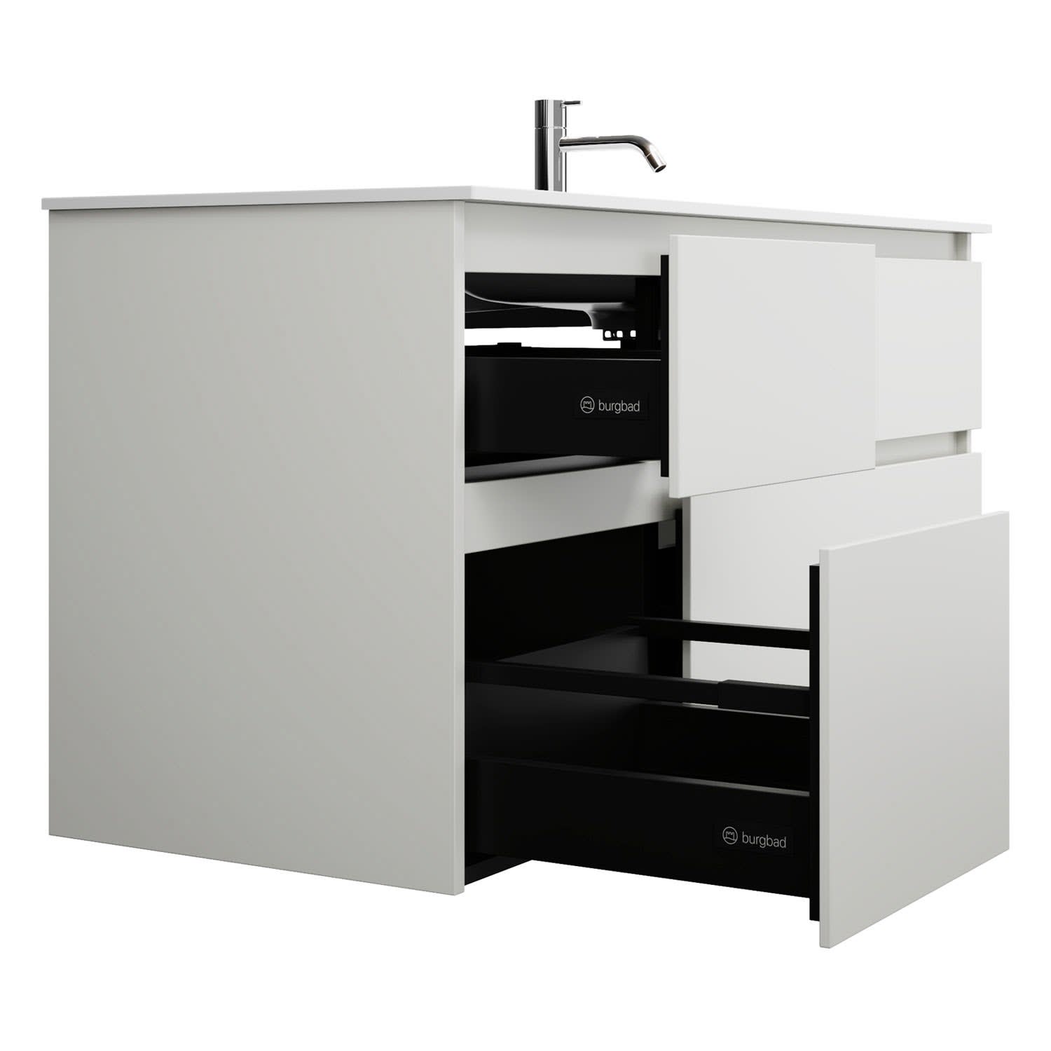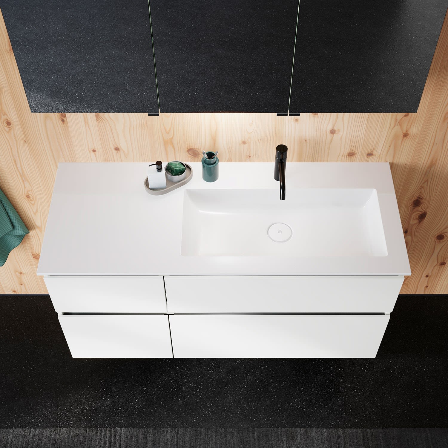 burgbad Lin20 Waschtischunterschrank mit Mineralguss-Waschtisch 122 cm, 4 Auszüge, rechts