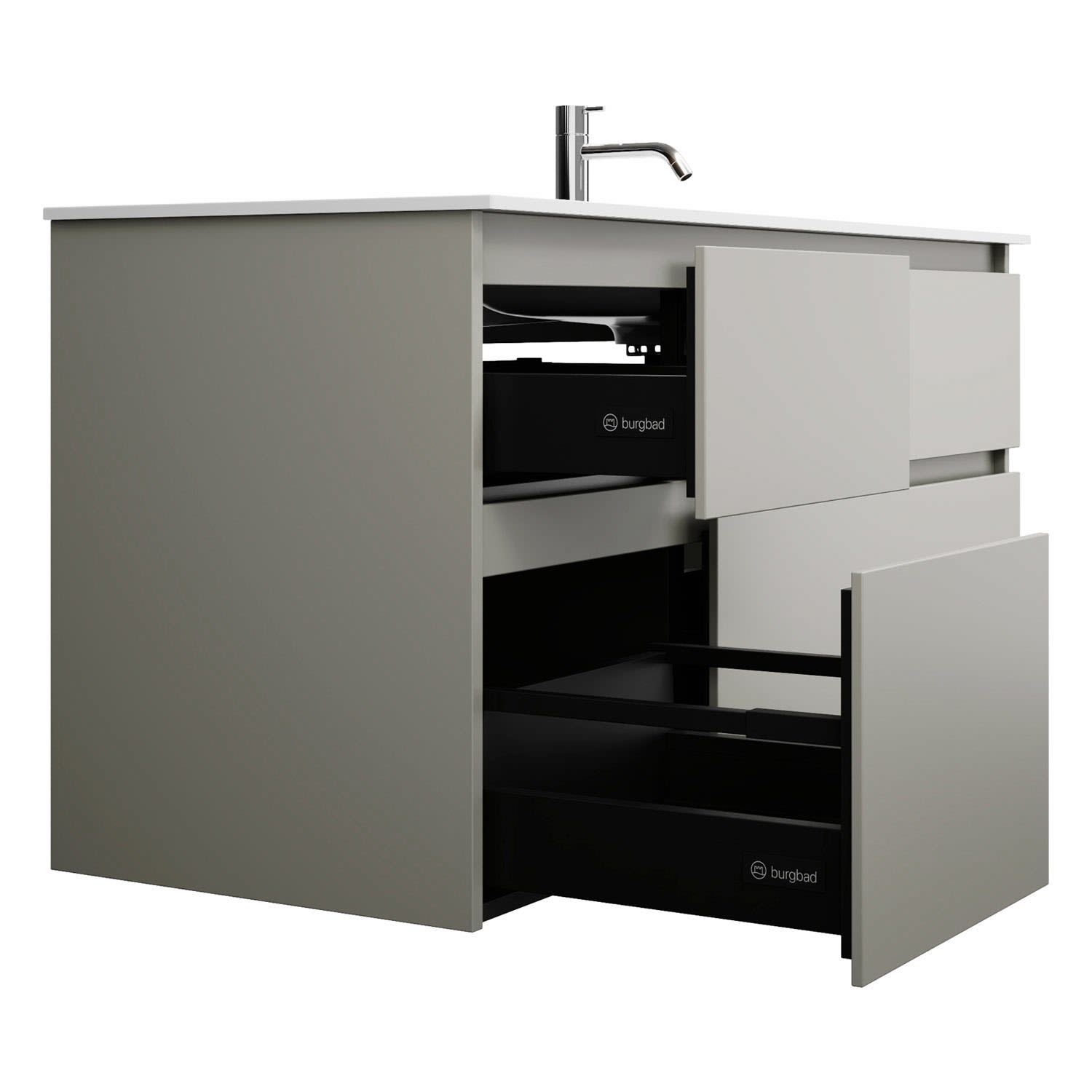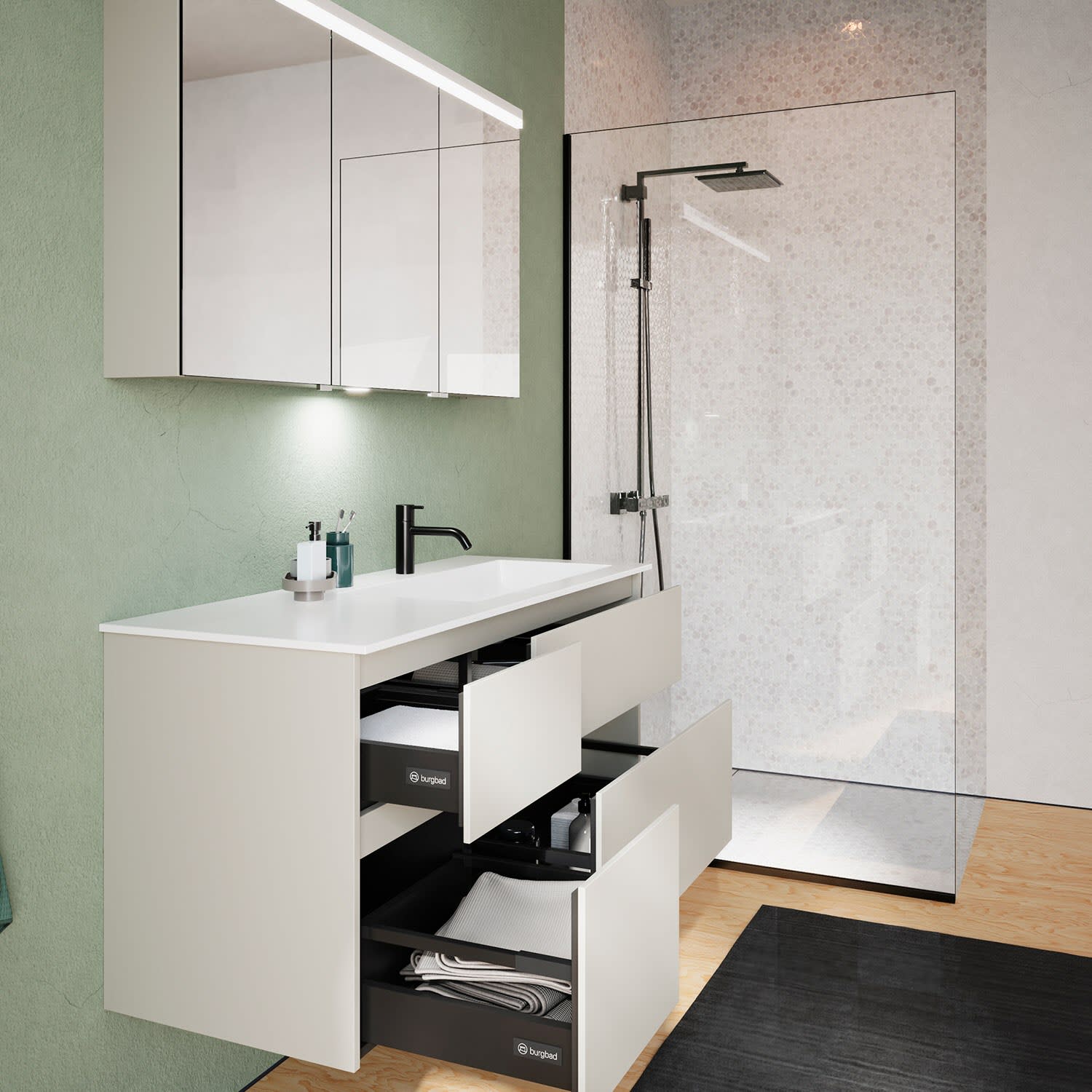 burgbad Lin20 Waschtischunterschrank mit Mineralguss-Waschtisch 122 cm, 4 Auszüge, rechts
