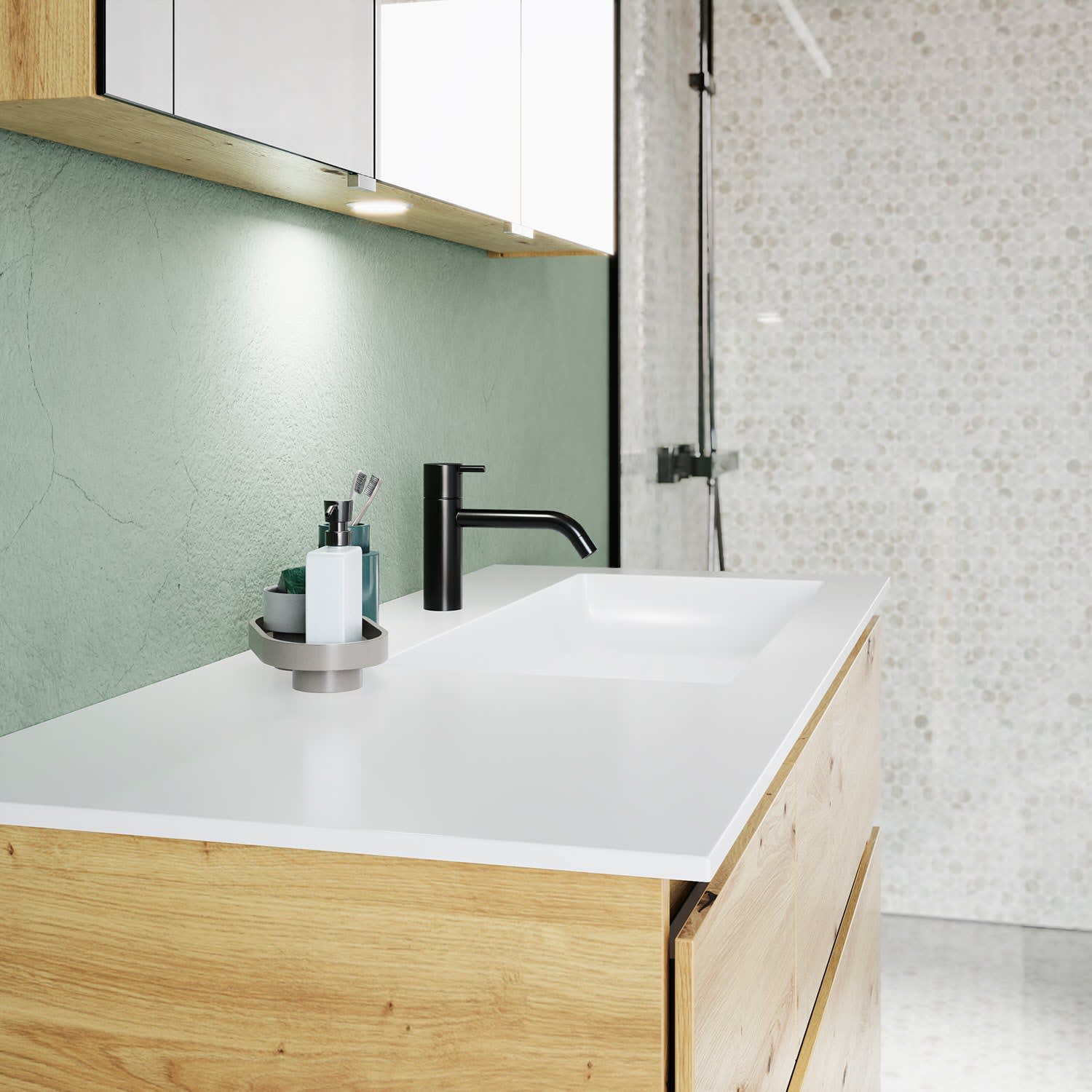 - homogene, geschlossene Oberfläche für leichte Pflege und Sauberkeit