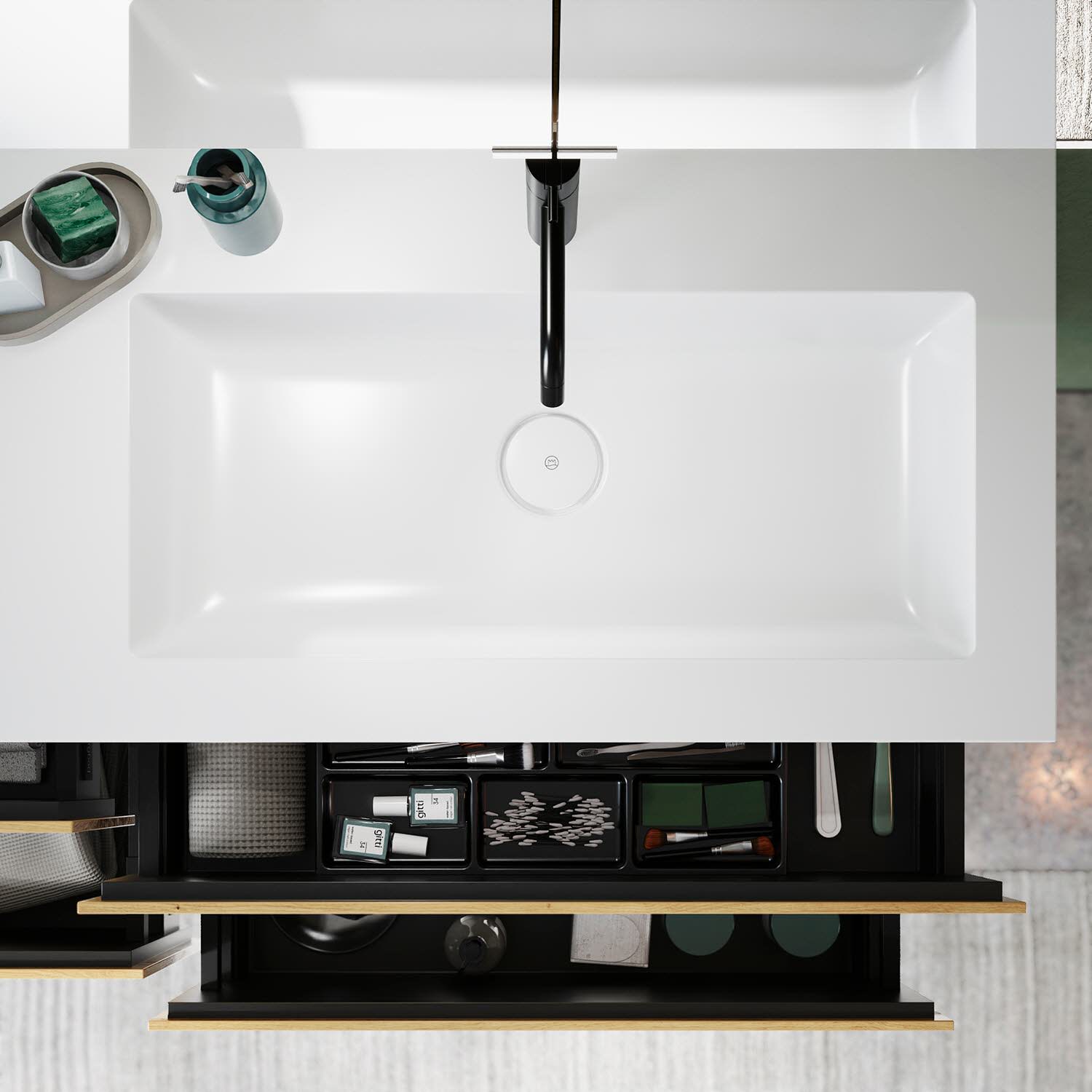 burgbad Lin20 Waschtischunterschrank mit Mineralguss-Waschtisch 122 cm, 4 Auszüge, rechts