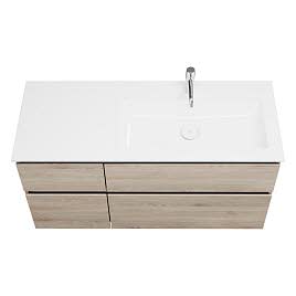 burgbad Lin20 Waschtischunterschrank mit Mineralguss-Waschtisch 122 cm, 4 Auszüge, rechts