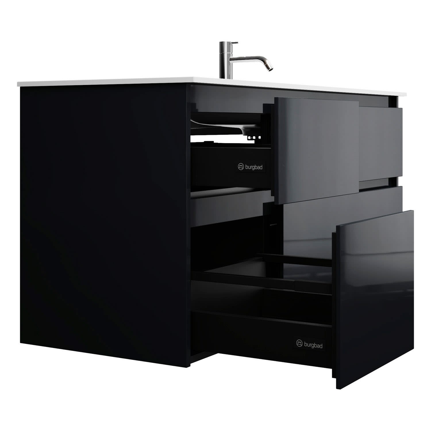 burgbad Lin20 Waschtischunterschrank mit Mineralguss-Waschtisch 122 cm, 4 Auszüge, rechts