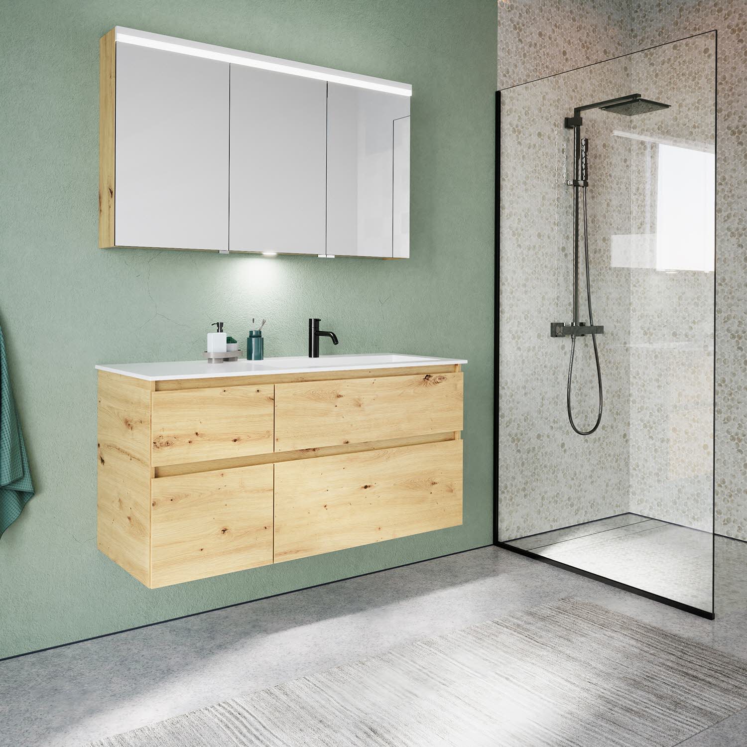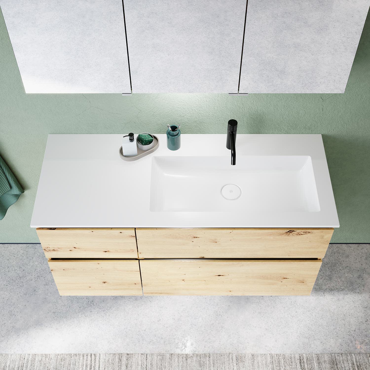 burgbad Lin20 Waschtischunterschrank mit Mineralguss-Waschtisch 122 cm, 4 Auszüge, rechts