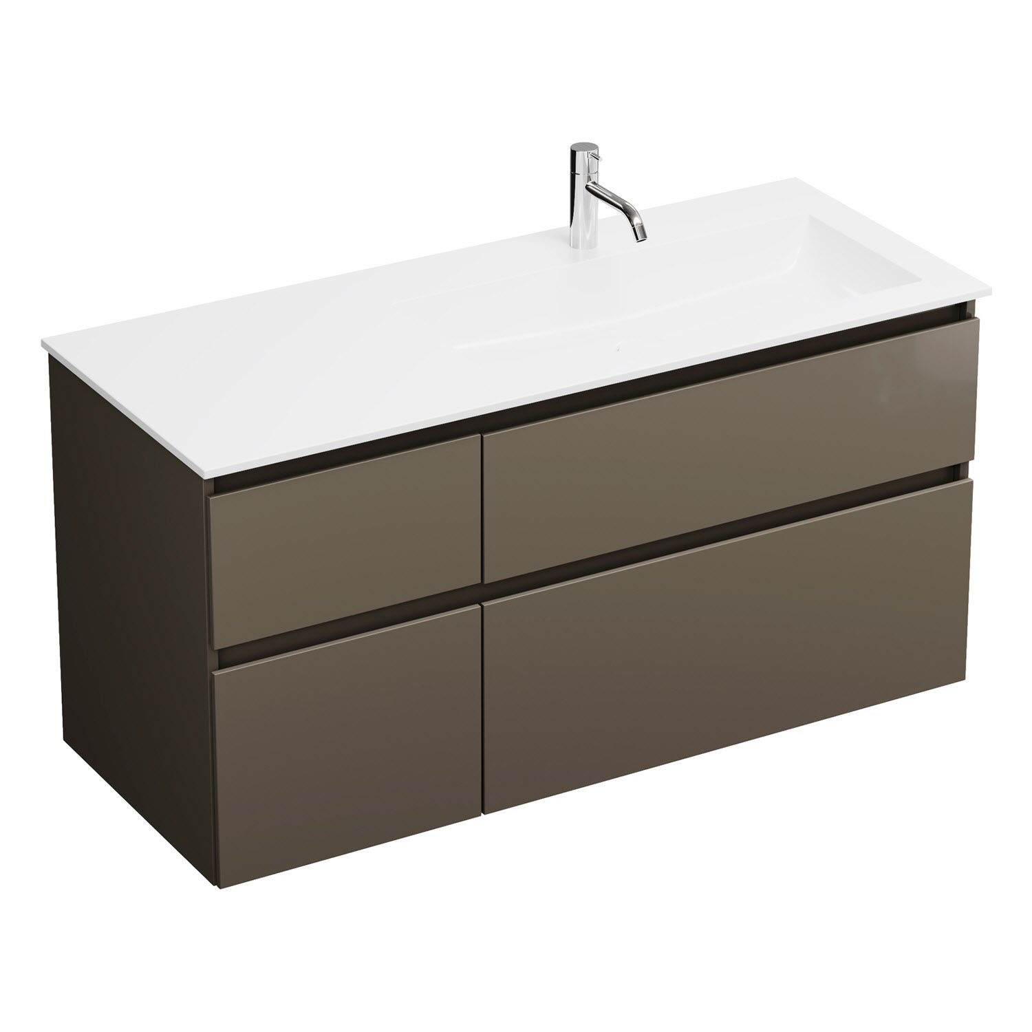 burgbad Lin20 Waschtischunterschrank mit Mineralguss-Waschtisch 122 cm, 4 Auszüge, rechts