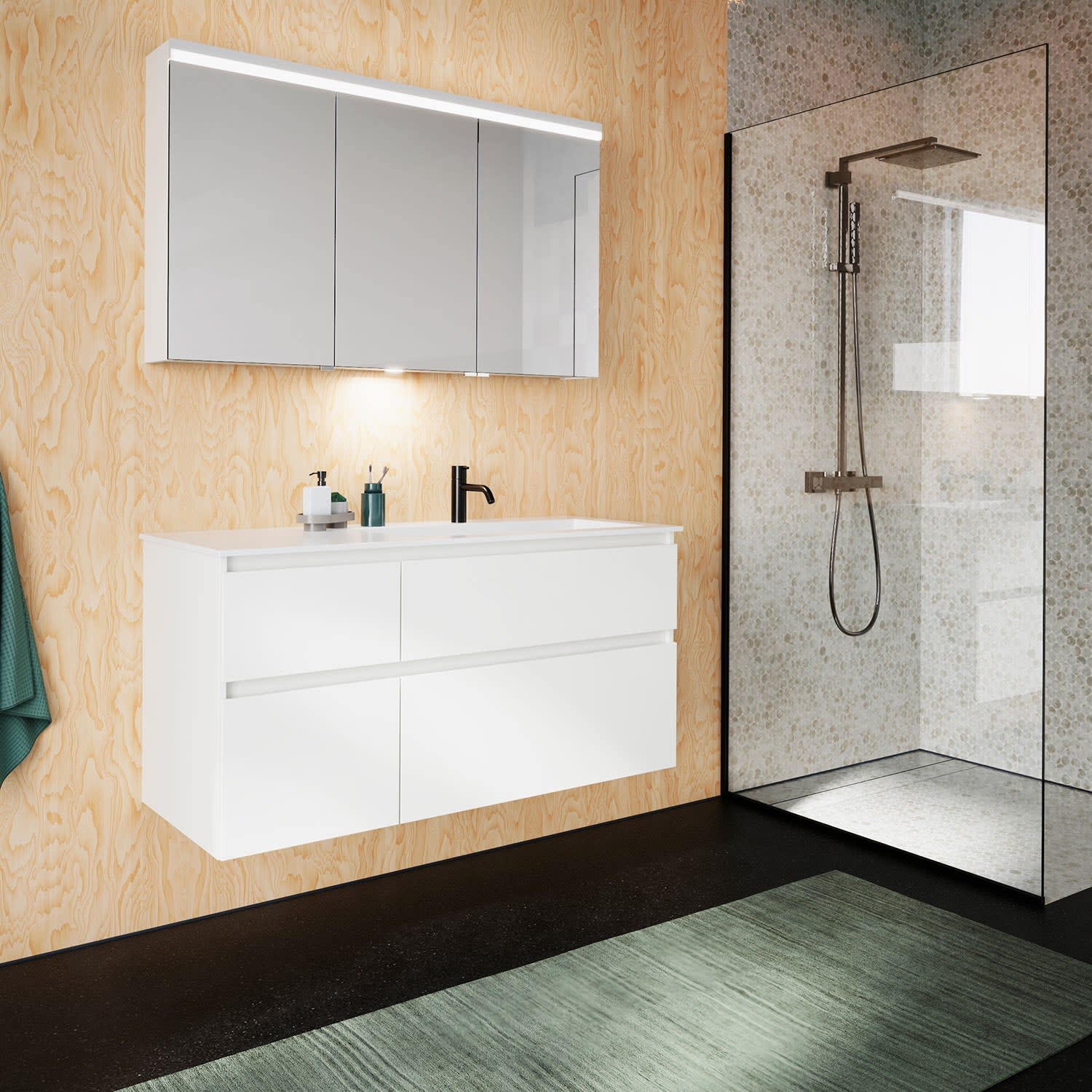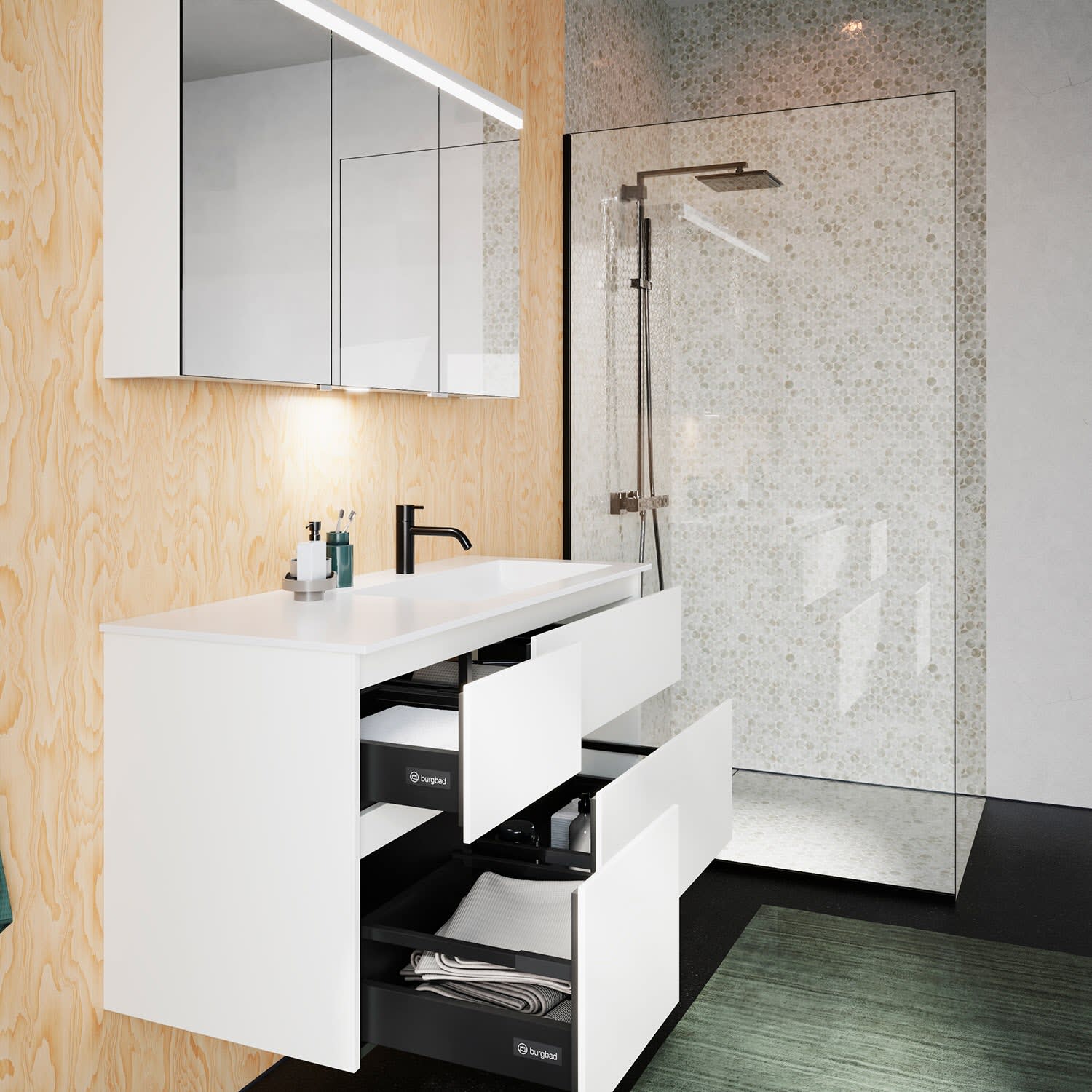 burgbad Lin20 Waschtischunterschrank mit Mineralguss-Waschtisch 122 cm, 4 Auszüge, rechts