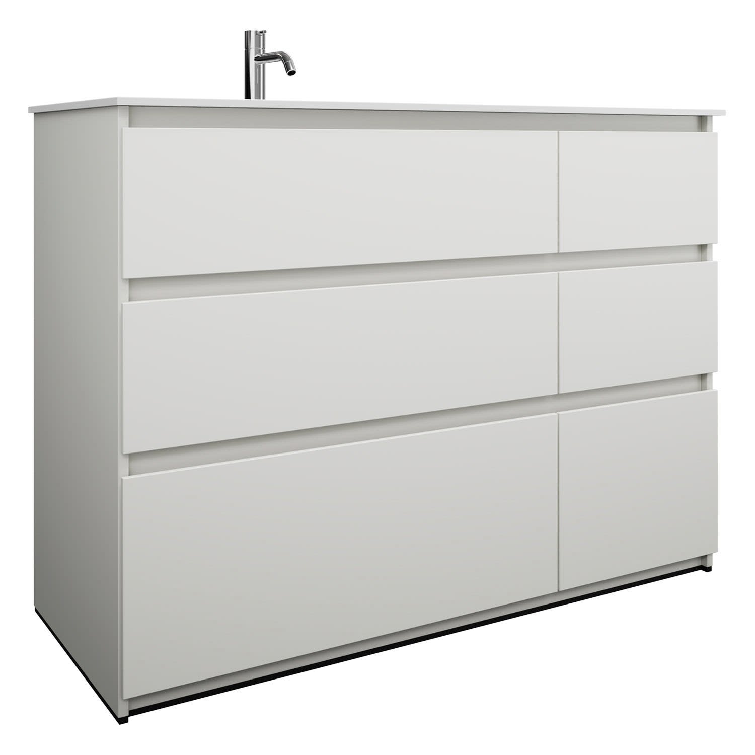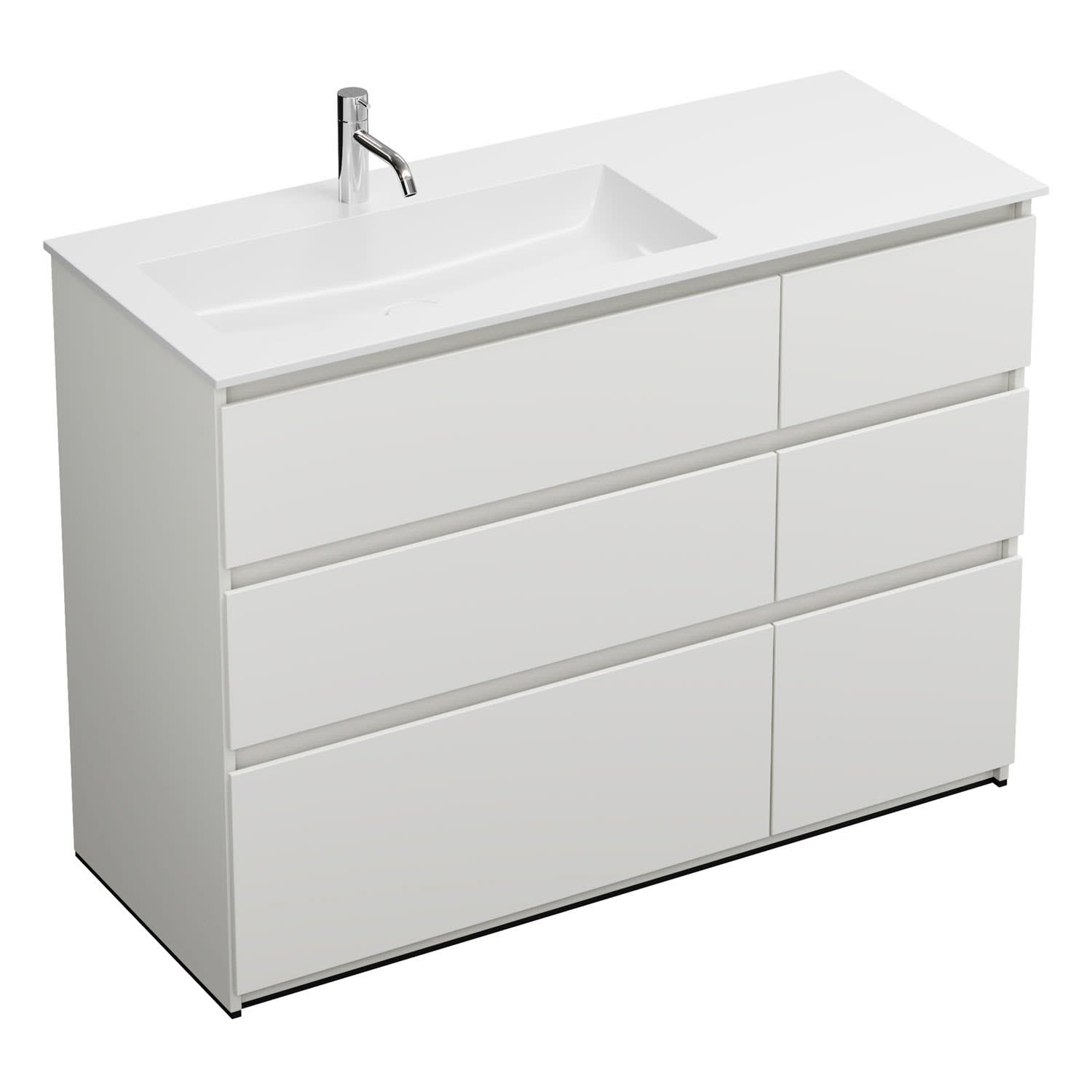 burgbad Lin20 Waschtischunterschrank mit Mineralguss-Waschtisch 122 cm, 6 Auszüge, links