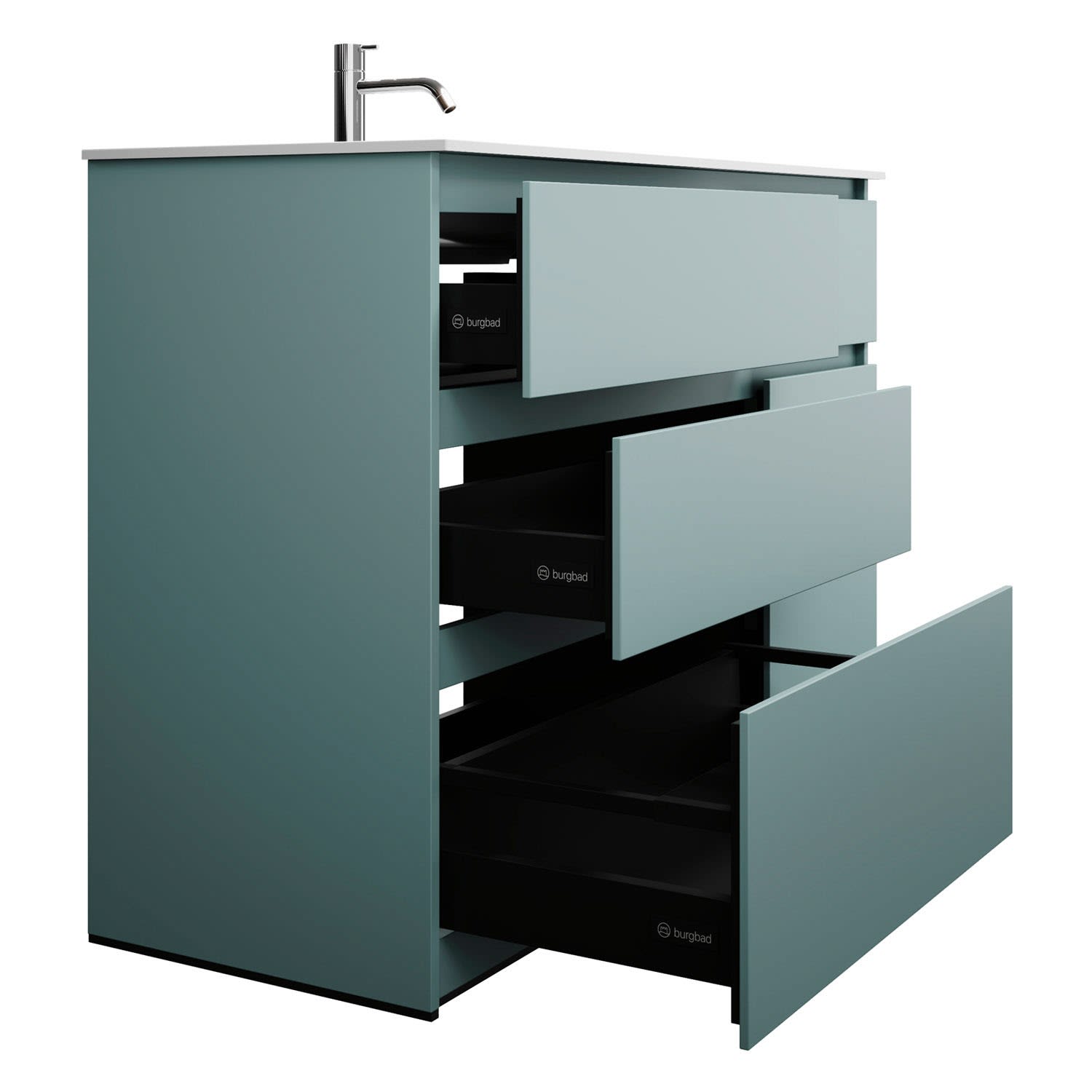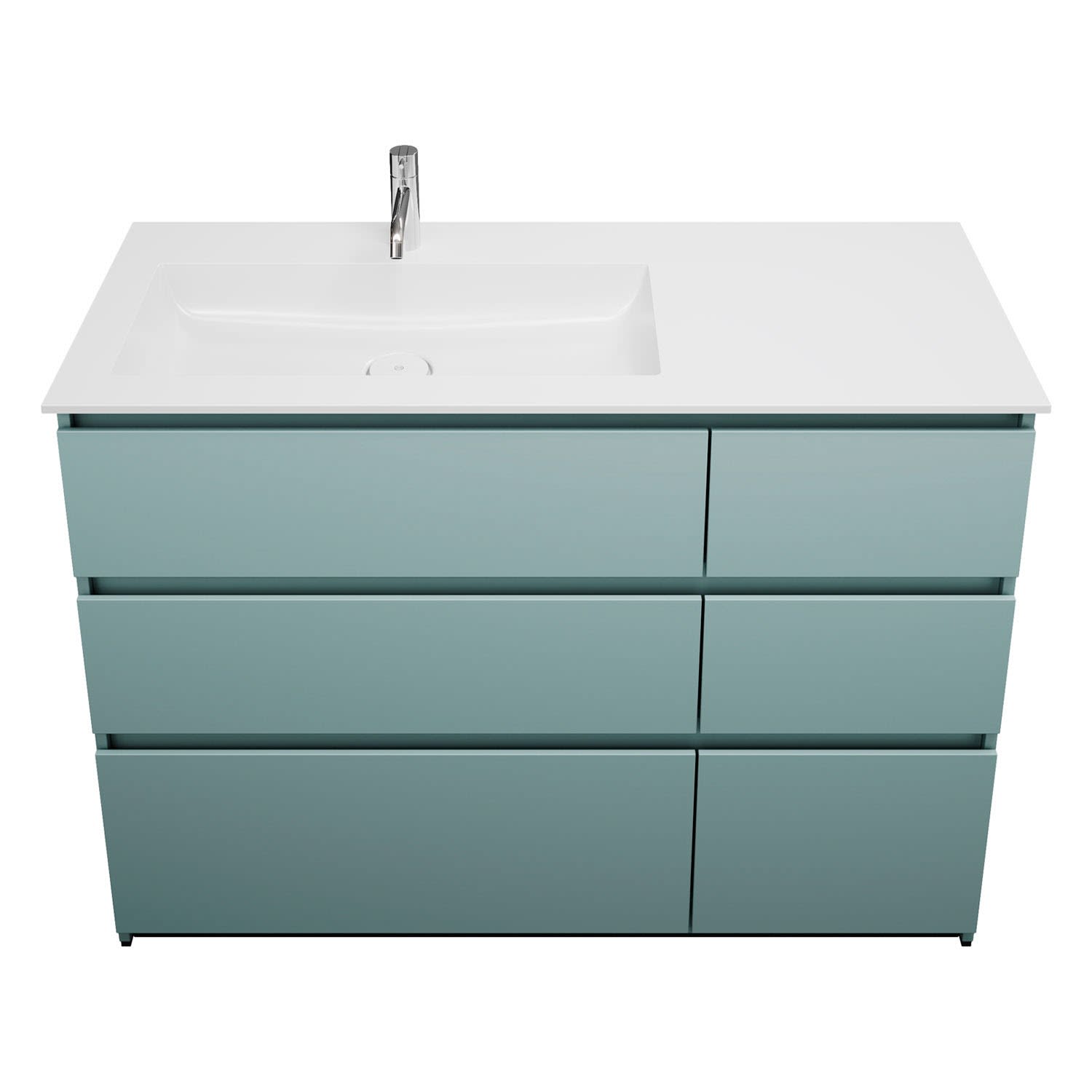 burgbad Lin20 Waschtischunterschrank mit Mineralguss-Waschtisch 122 cm, 6 Auszüge, links