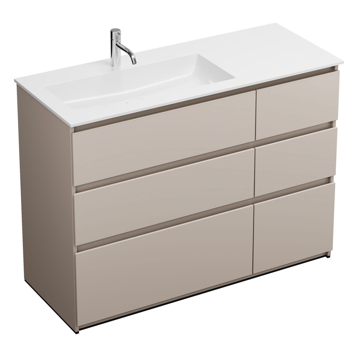 burgbad Lin20 Waschtischunterschrank mit Mineralguss-Waschtisch 122 cm, 6 Auszüge, links