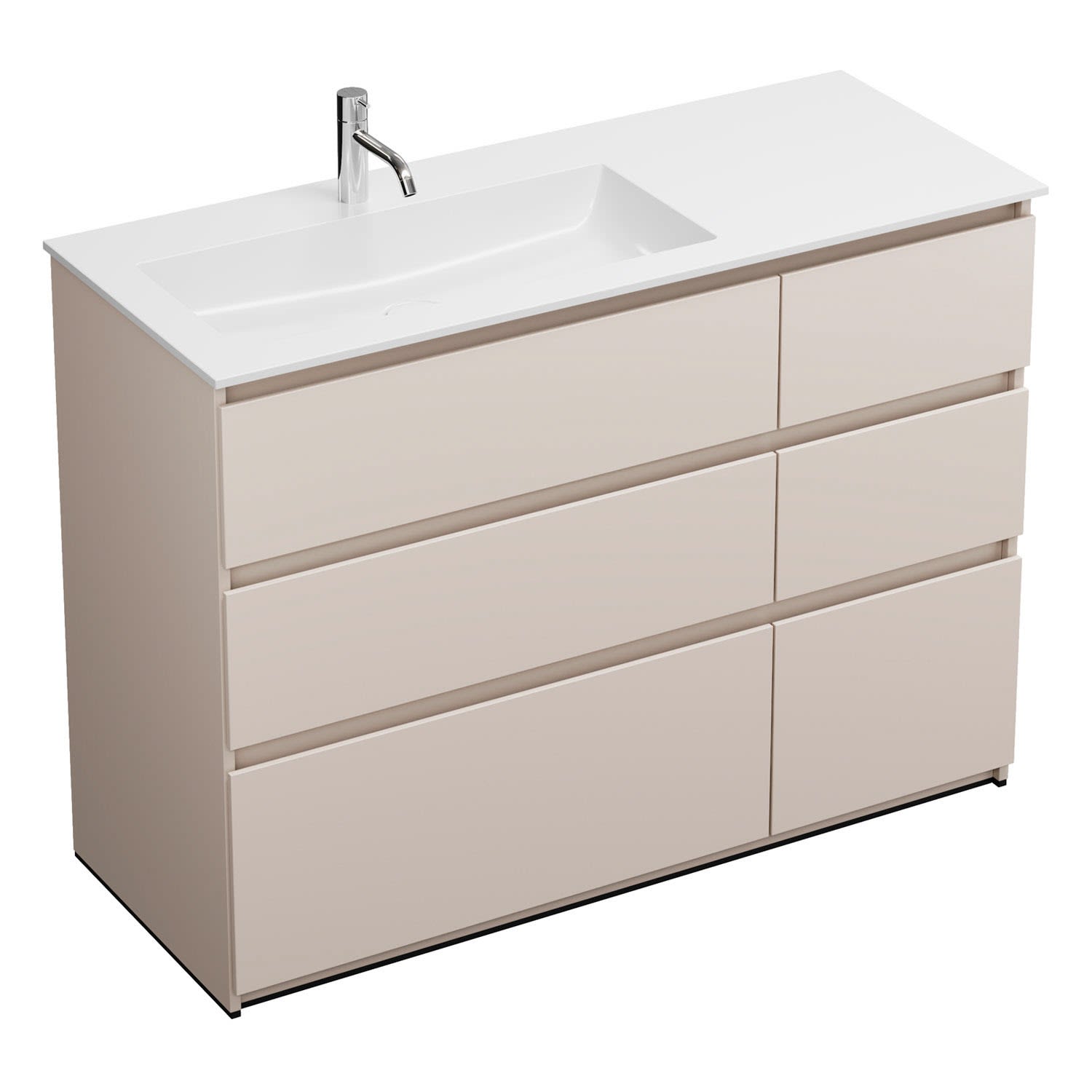 burgbad Lin20 Waschtischunterschrank mit Mineralguss-Waschtisch 122 cm, 6 Auszüge, links