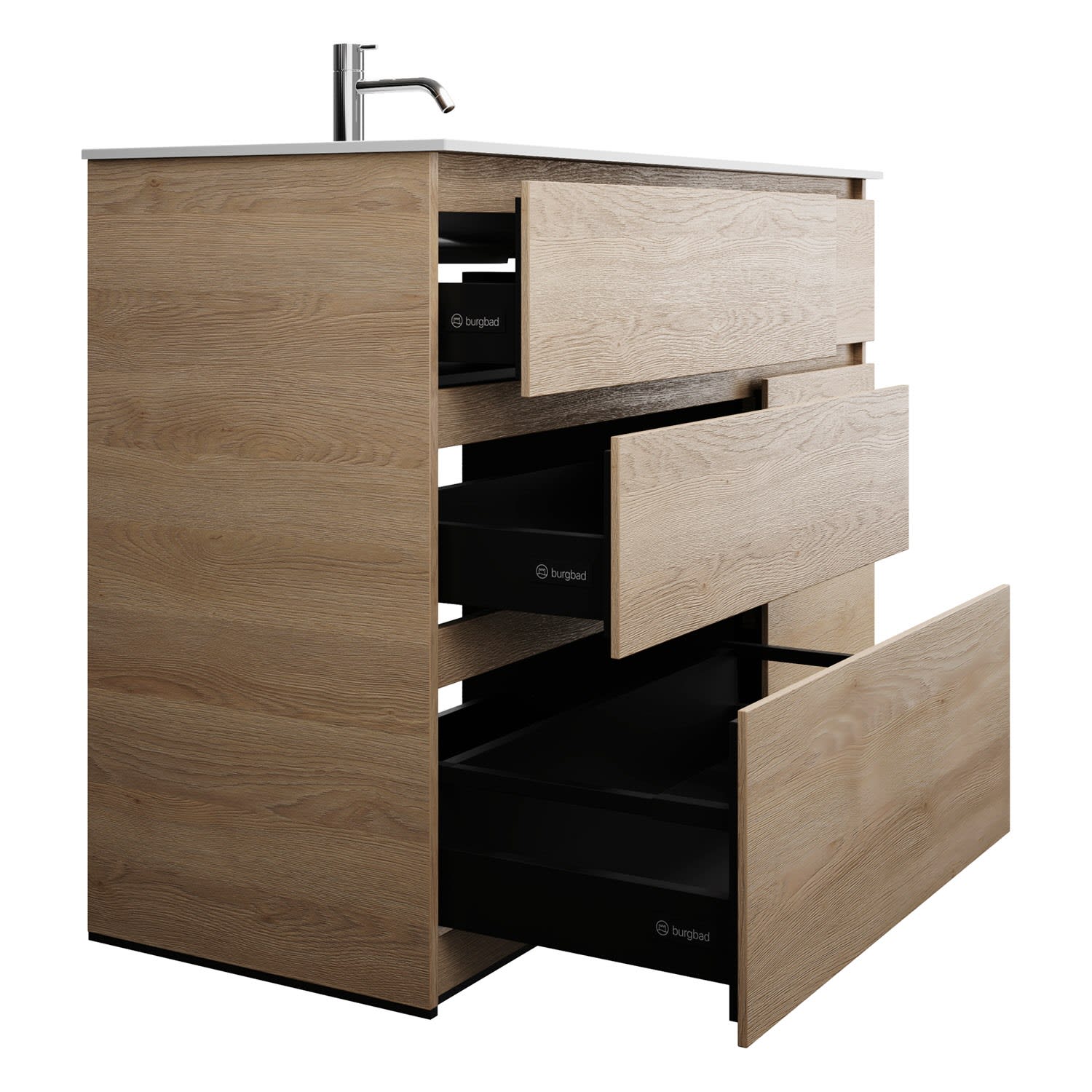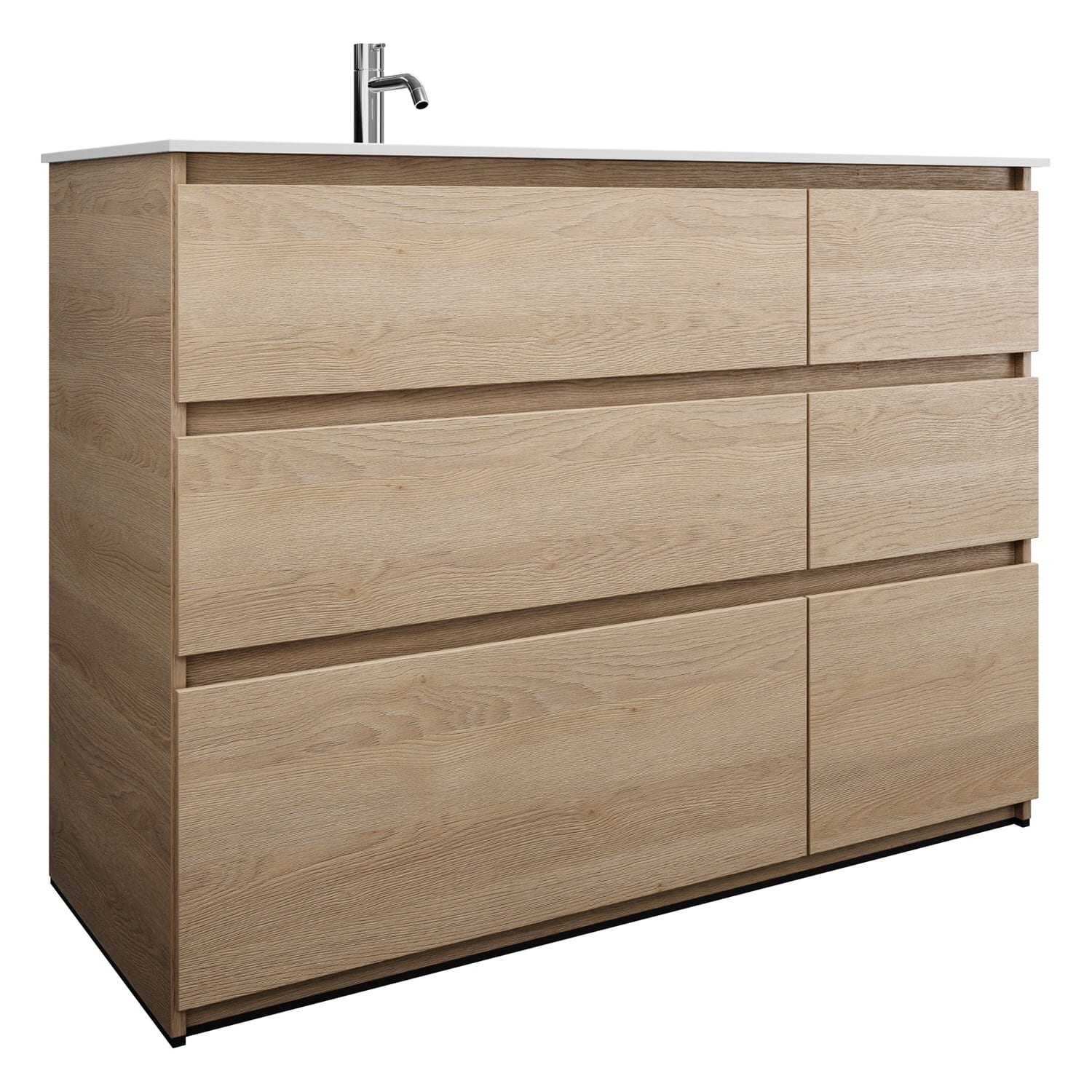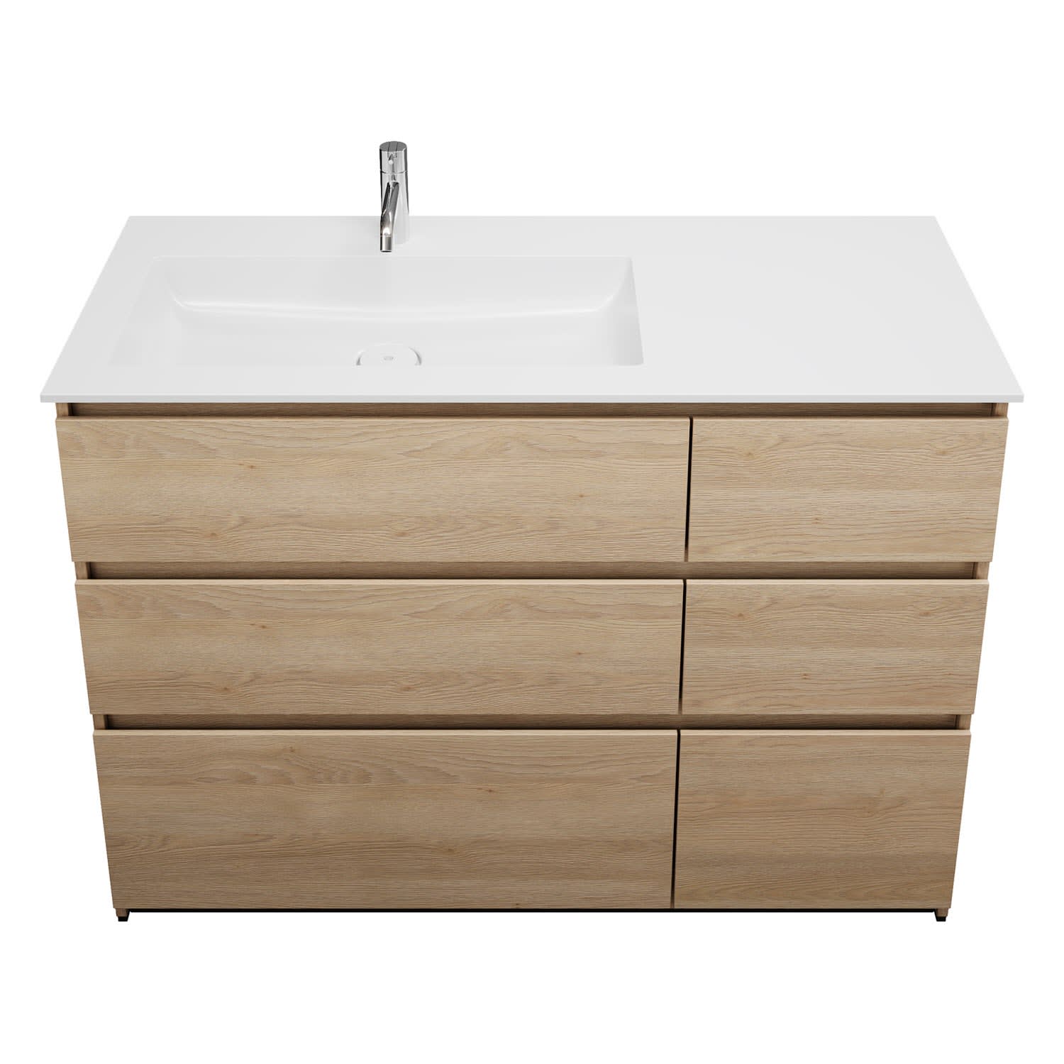 burgbad Lin20 Waschtischunterschrank mit Mineralguss-Waschtisch 122 cm, 6 Auszüge, links