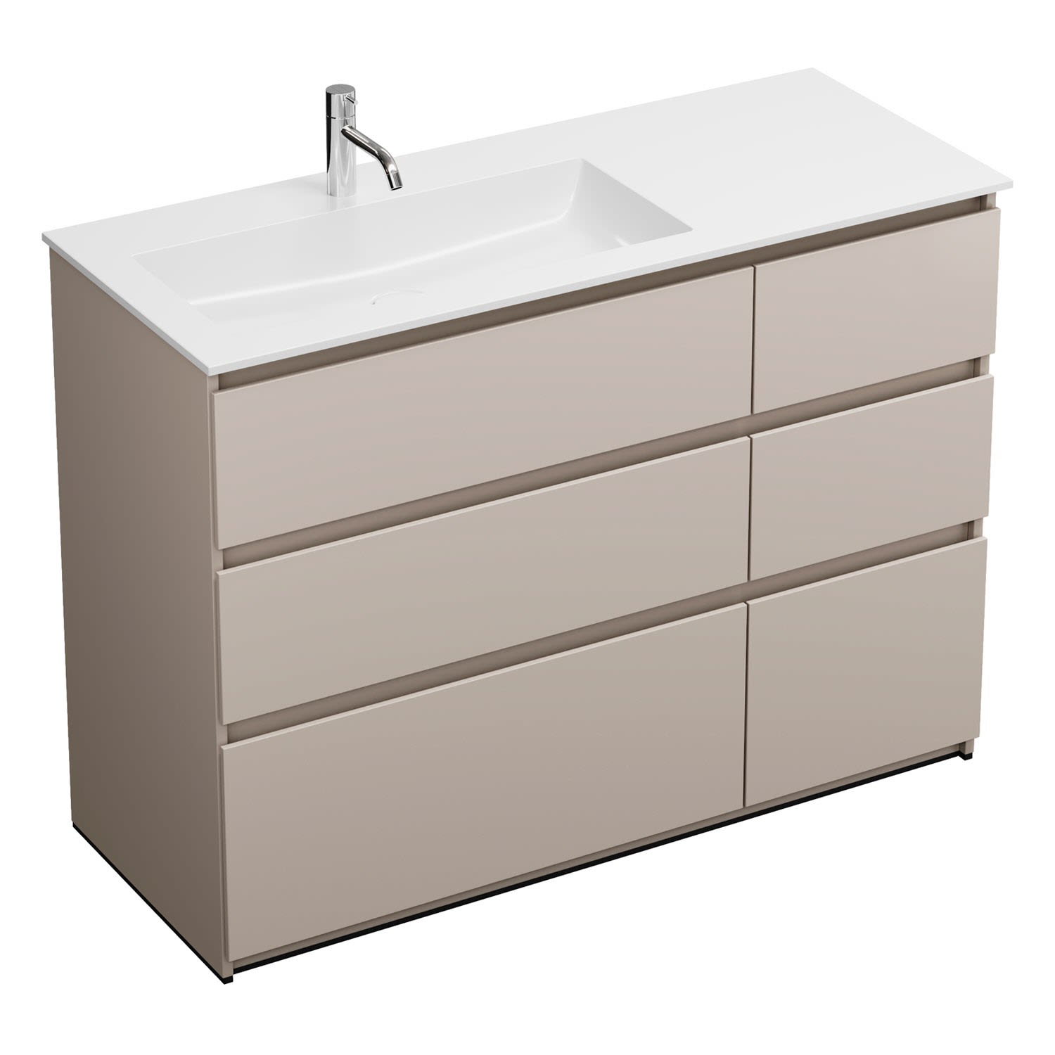burgbad Lin20 Waschtischunterschrank mit Mineralguss-Waschtisch 122 cm, 6 Auszüge, links
