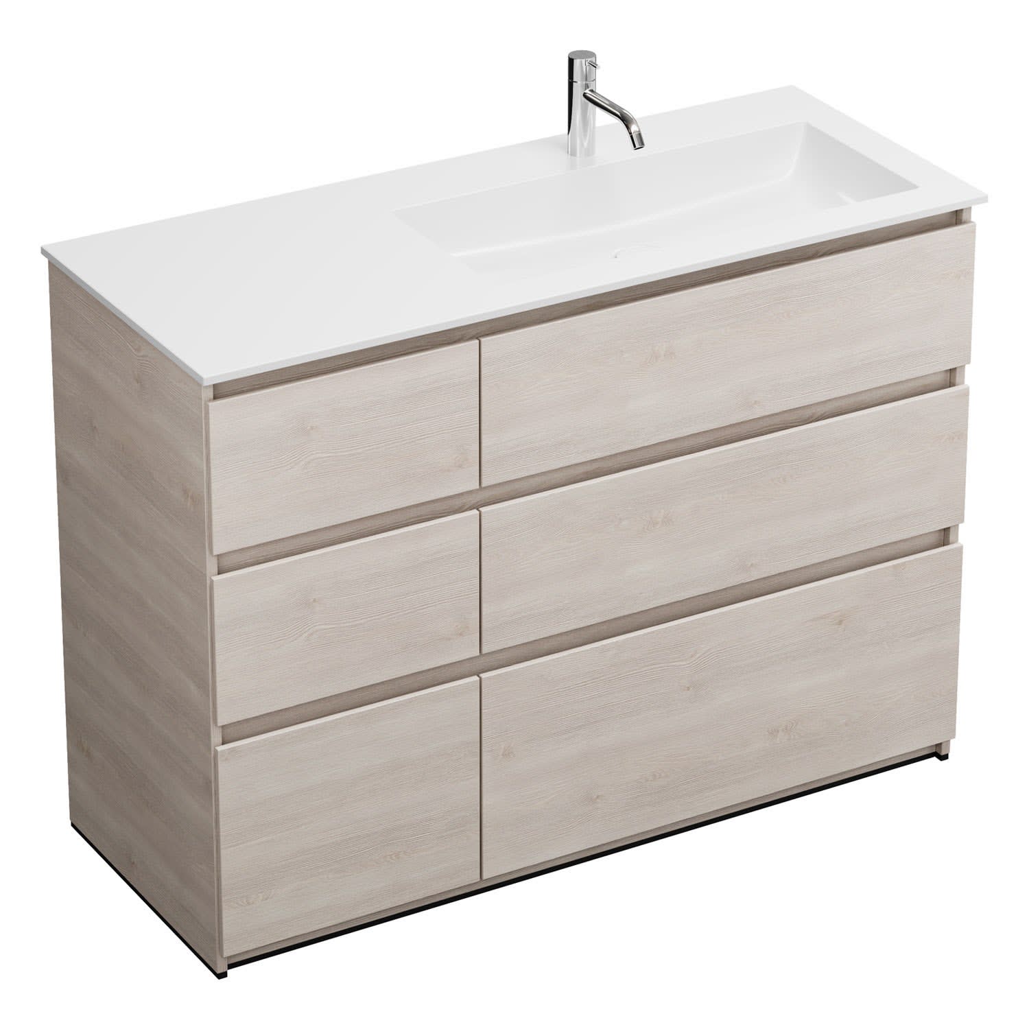 burgbad Lin20 Waschtischunterschrank mit Mineralguss-Waschtisch 122 cm, 6 Auszüge, rechts