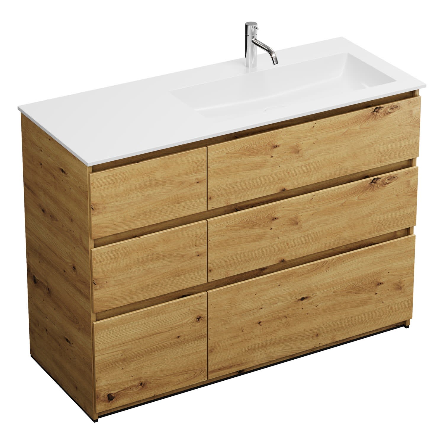 burgbad Lin20 Waschtischunterschrank mit Mineralguss-Waschtisch 122 cm, 6 Auszüge, rechts
