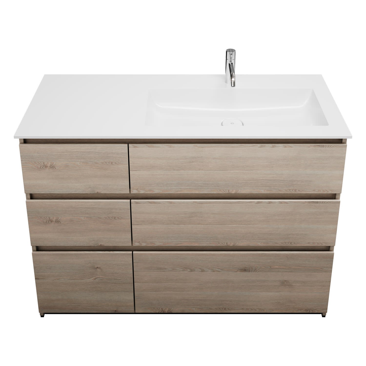 burgbad Lin20 Waschtischunterschrank mit Mineralguss-Waschtisch 122 cm, 6 Auszüge, rechts