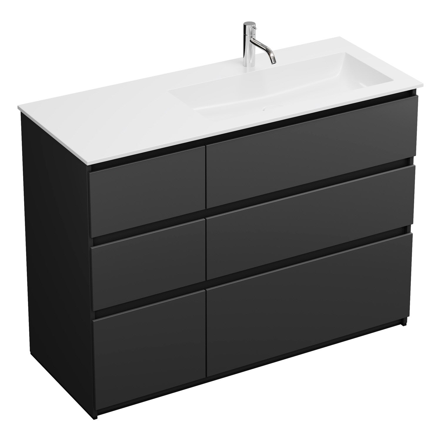 burgbad Lin20 Waschtischunterschrank mit Mineralguss-Waschtisch 122 cm, 6 Auszüge, rechts