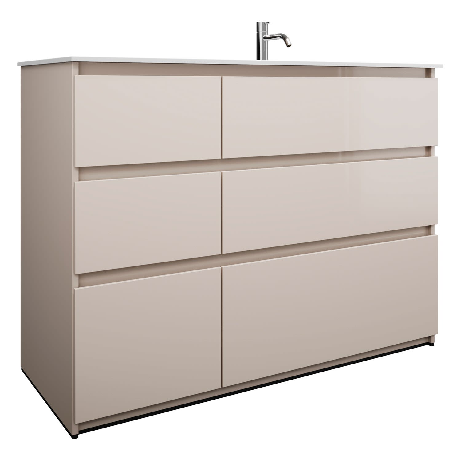 burgbad Lin20 Waschtischunterschrank mit Mineralguss-Waschtisch 122 cm, 6 Auszüge, rechts