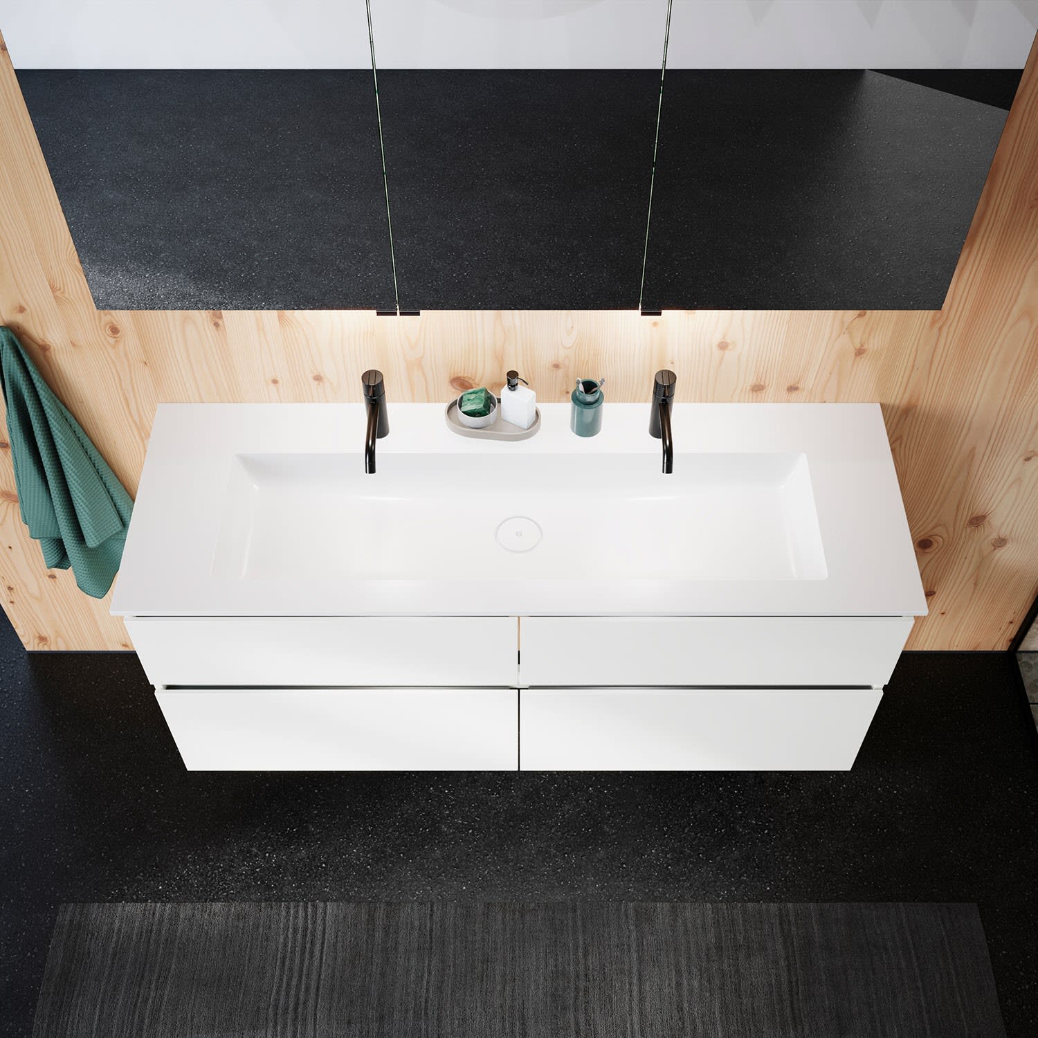 burgbad Lin20 Waschtischunterschrank mit Mineralguss-Waschtisch 142 cm, 4 Auszüge