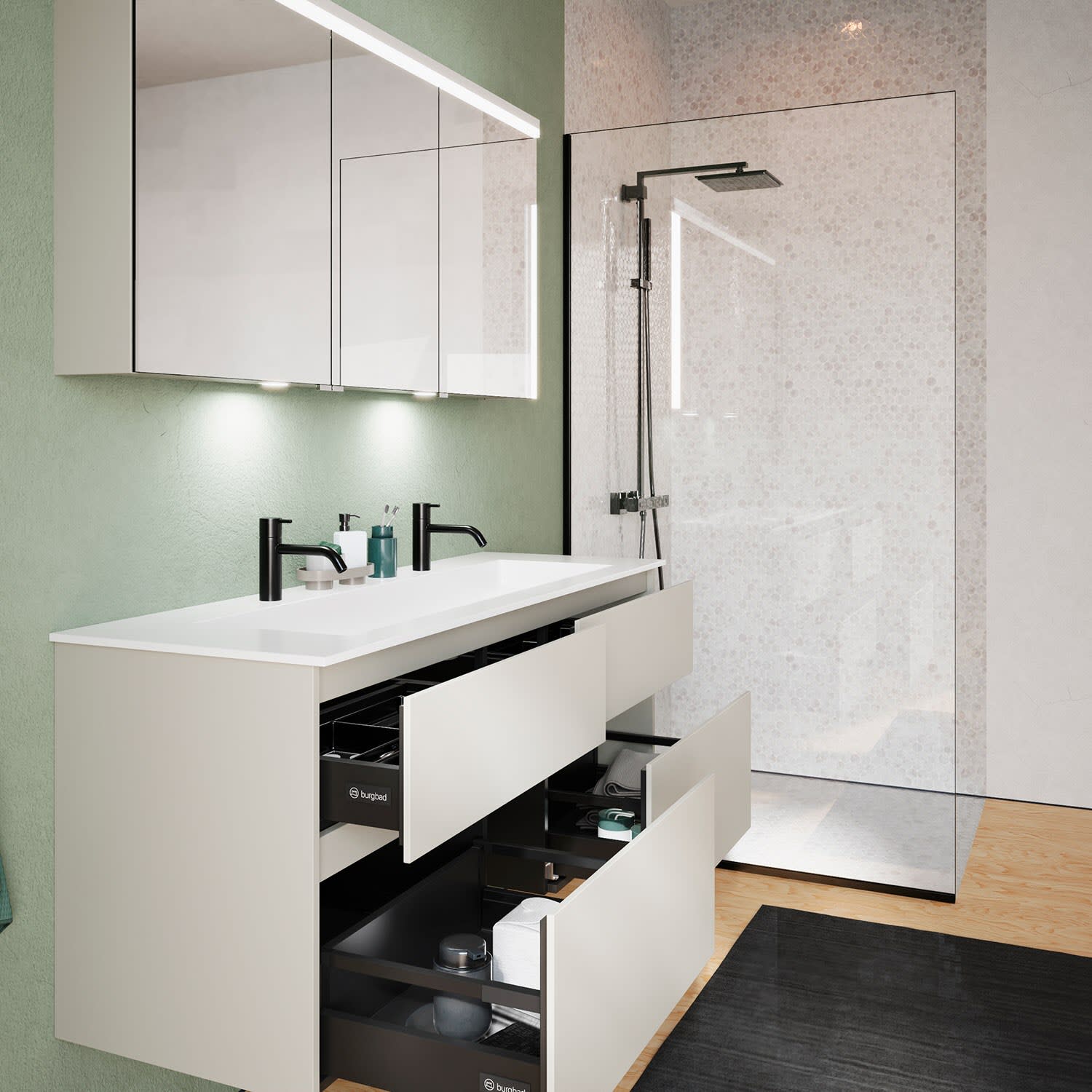- inkl. burgbad cleanFlow Permanentablauf, optional staubar mit der cleanFlow+ Ablaufabdeckung (Bitte separat aus dem Zubehör bestellen.)