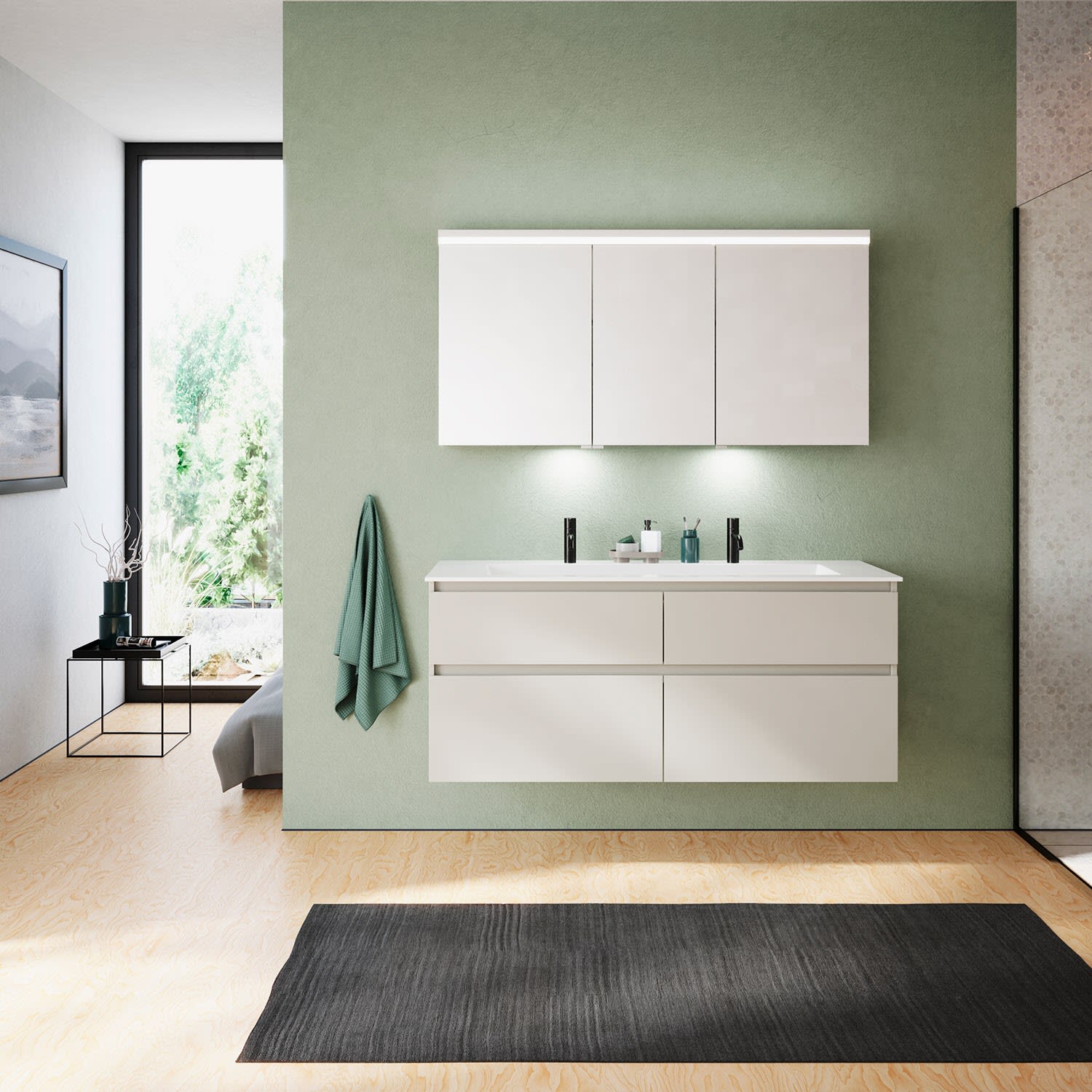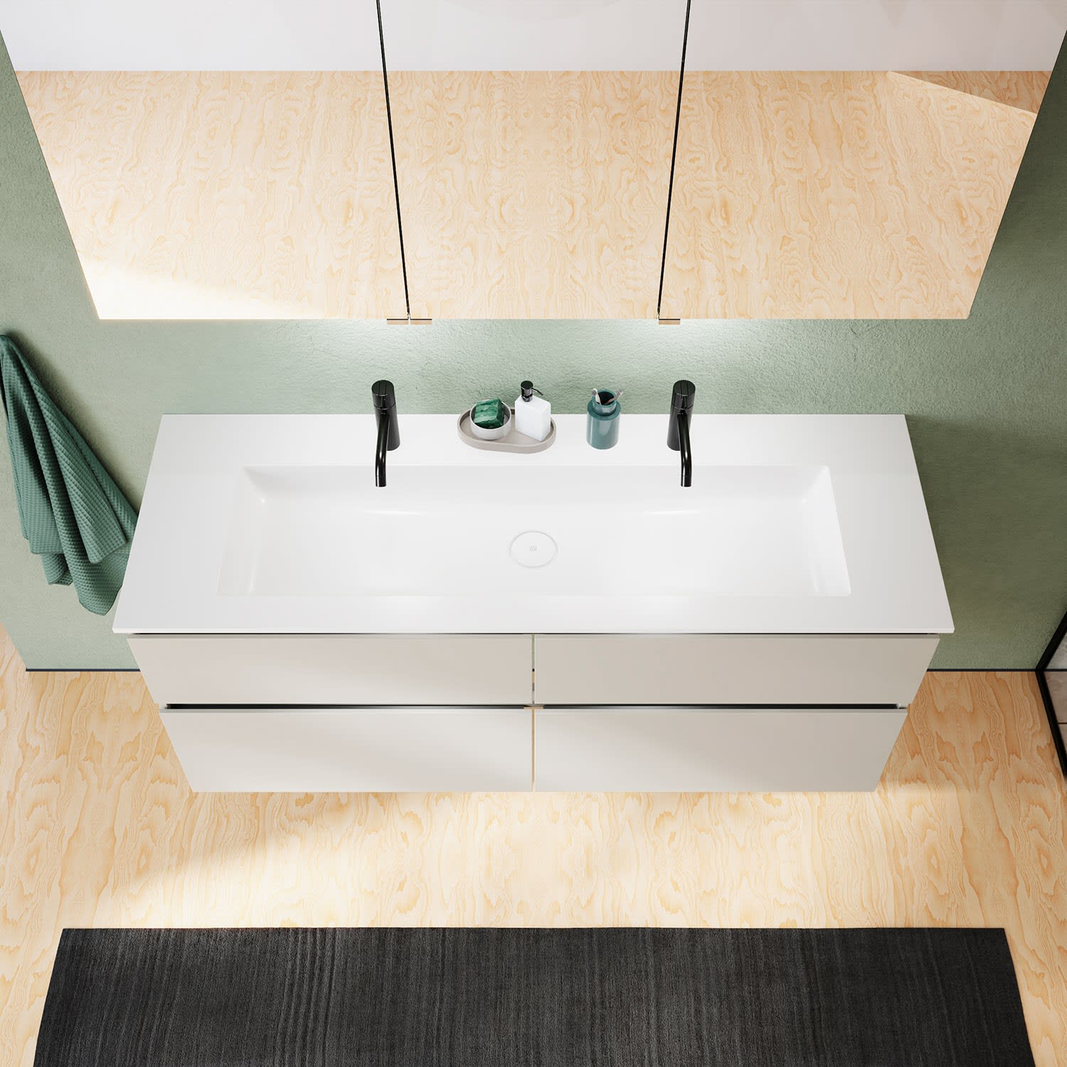 burgbad Lin20 Waschtischunterschrank mit Mineralguss-Waschtisch 142 cm, 4 Auszüge