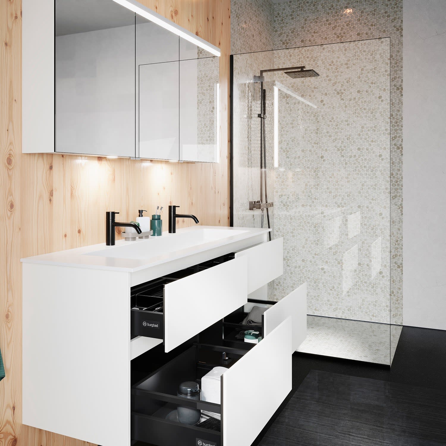 burgbad Lin20 Waschtischunterschrank mit Mineralguss-Waschtisch 142 cm, 4 Auszüge