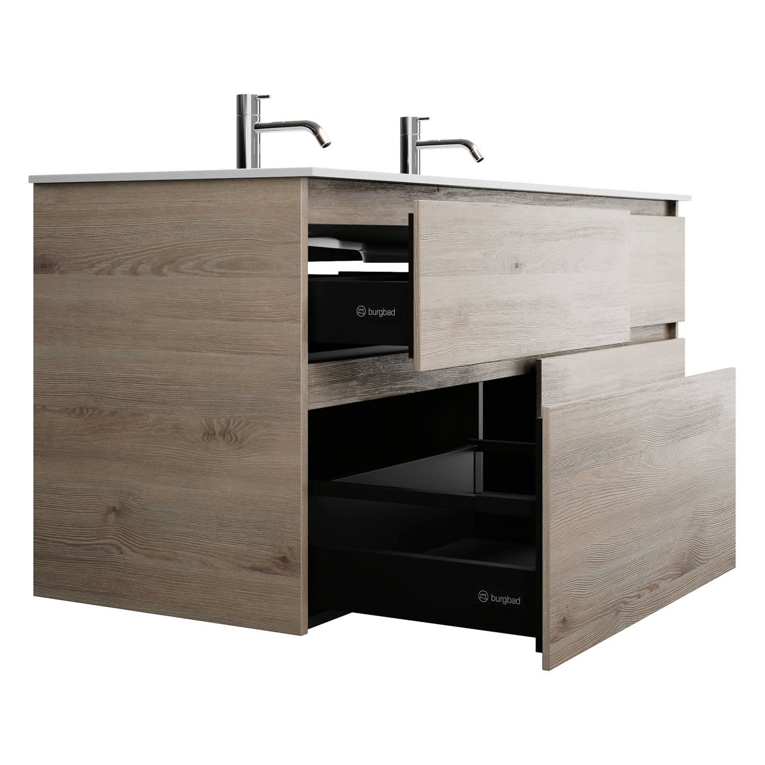 burgbad Lin20 Waschtischunterschrank mit Mineralguss-Waschtisch 142 cm, 4 Auszüge