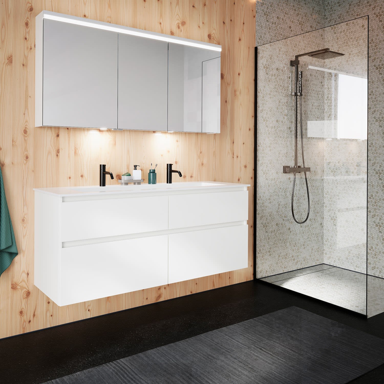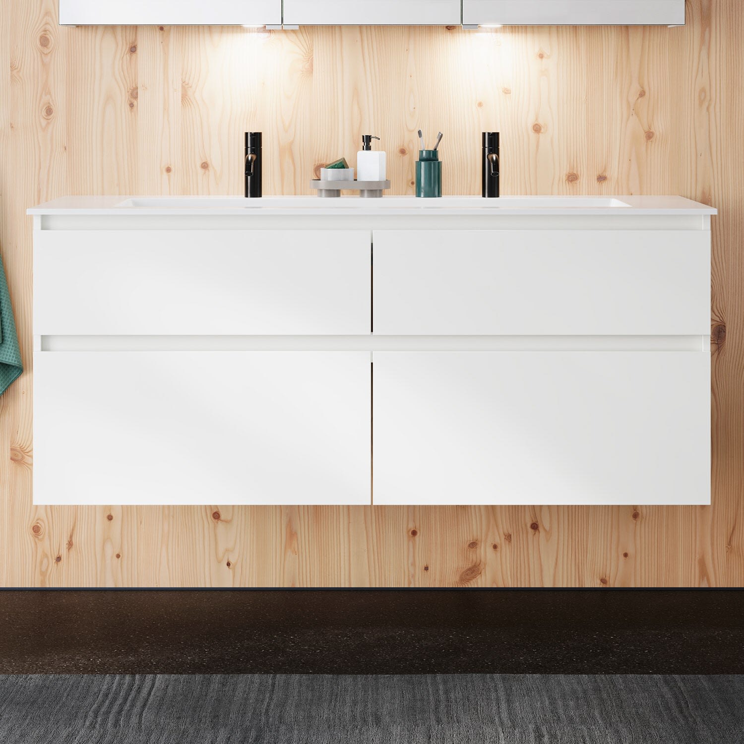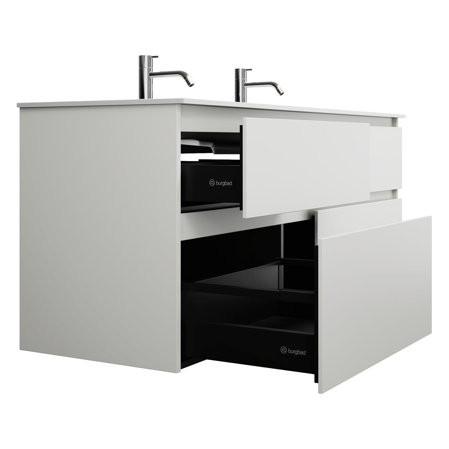 burgbad Lin20 Waschtischunterschrank mit Mineralguss-Waschtisch 142 cm, 4 Auszüge