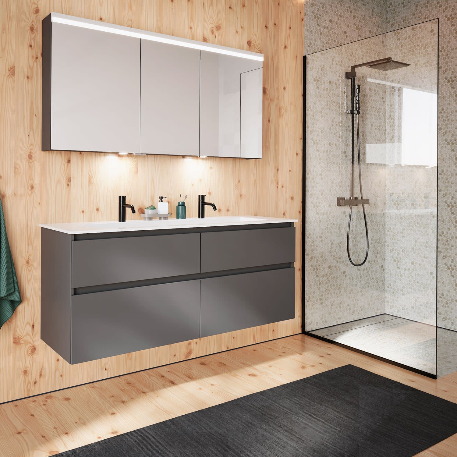burgbad Lin20 Waschtischunterschrank mit Mineralguss-Waschtisch 142 cm, 4 Auszüge