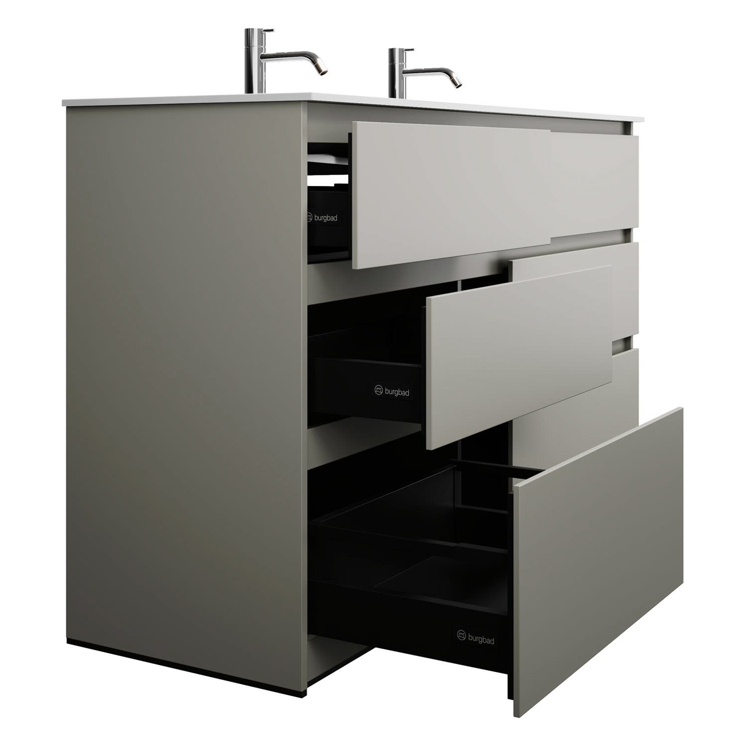 burgbad Lin20 Waschtischunterschrank mit Mineralguss-Waschtisch 142 cm, 6 Auszüge