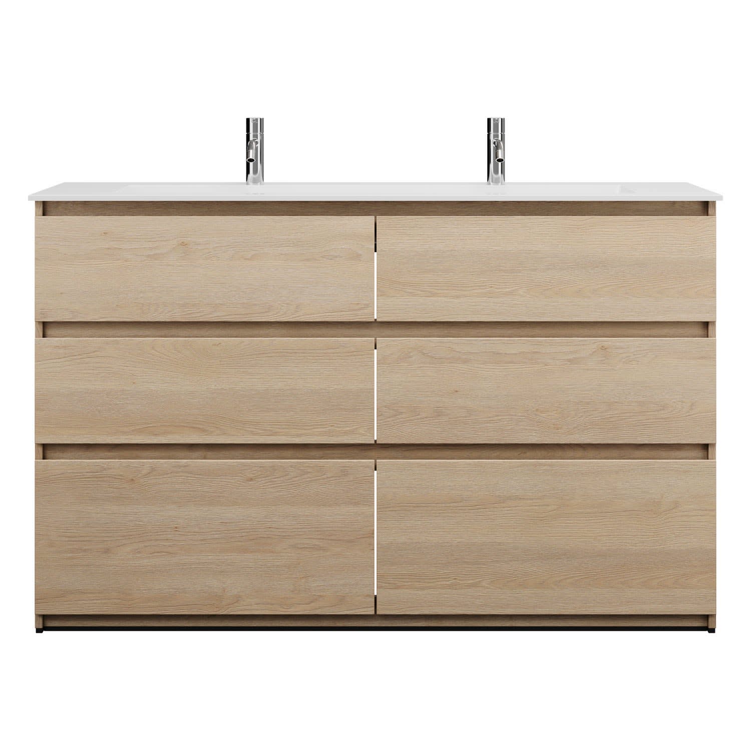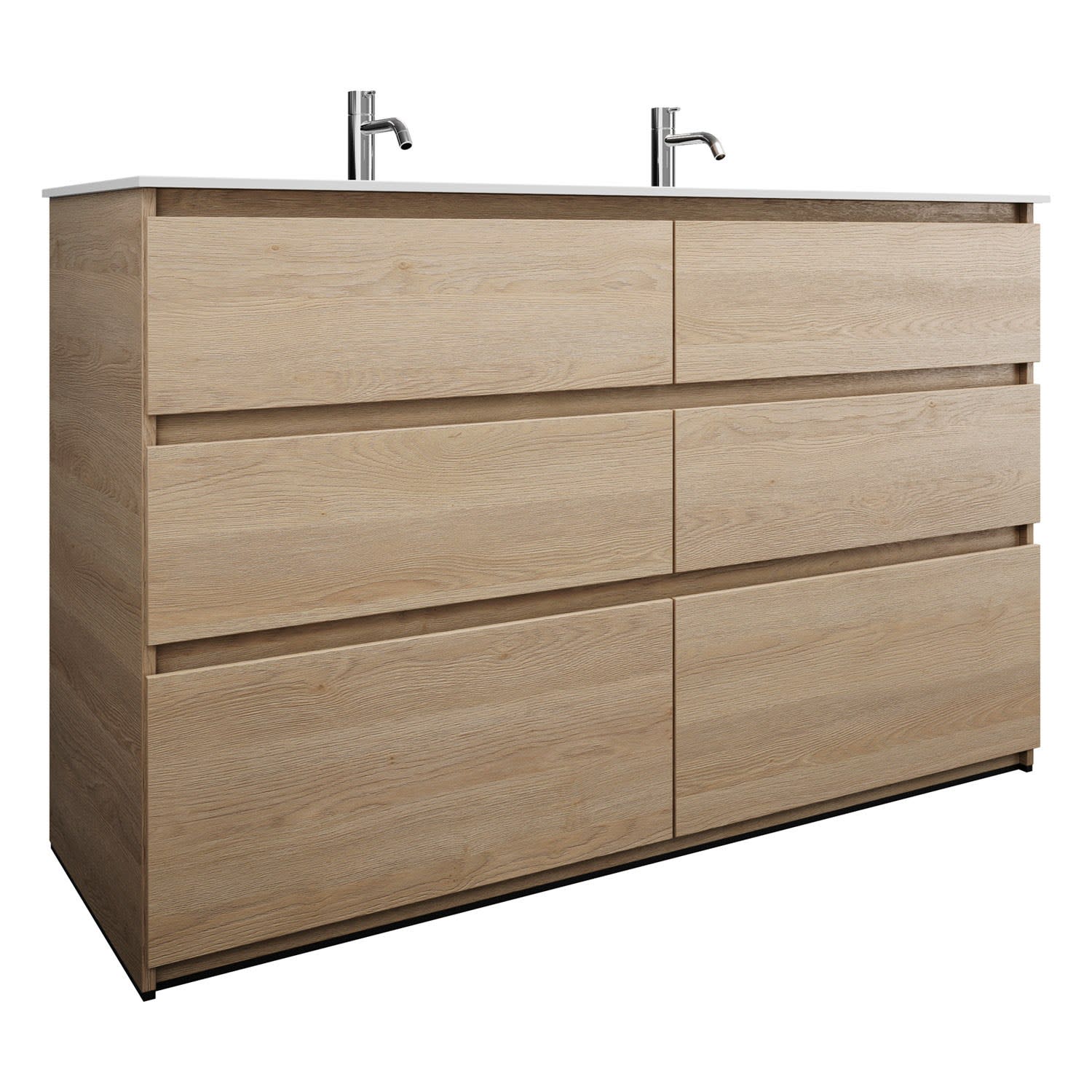 burgbad Lin20 Waschtischunterschrank mit Mineralguss-Waschtisch 142 cm, 6 Auszüge