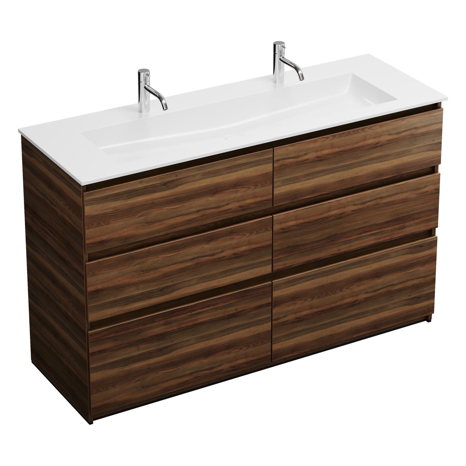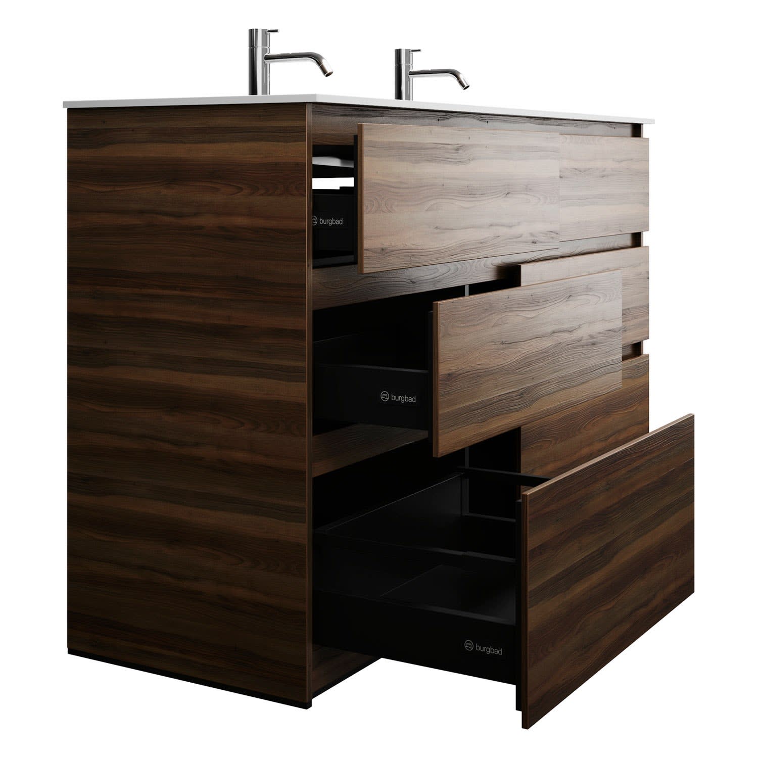 burgbad Lin20 Waschtischunterschrank mit Mineralguss-Waschtisch 142 cm, 6 Auszüge