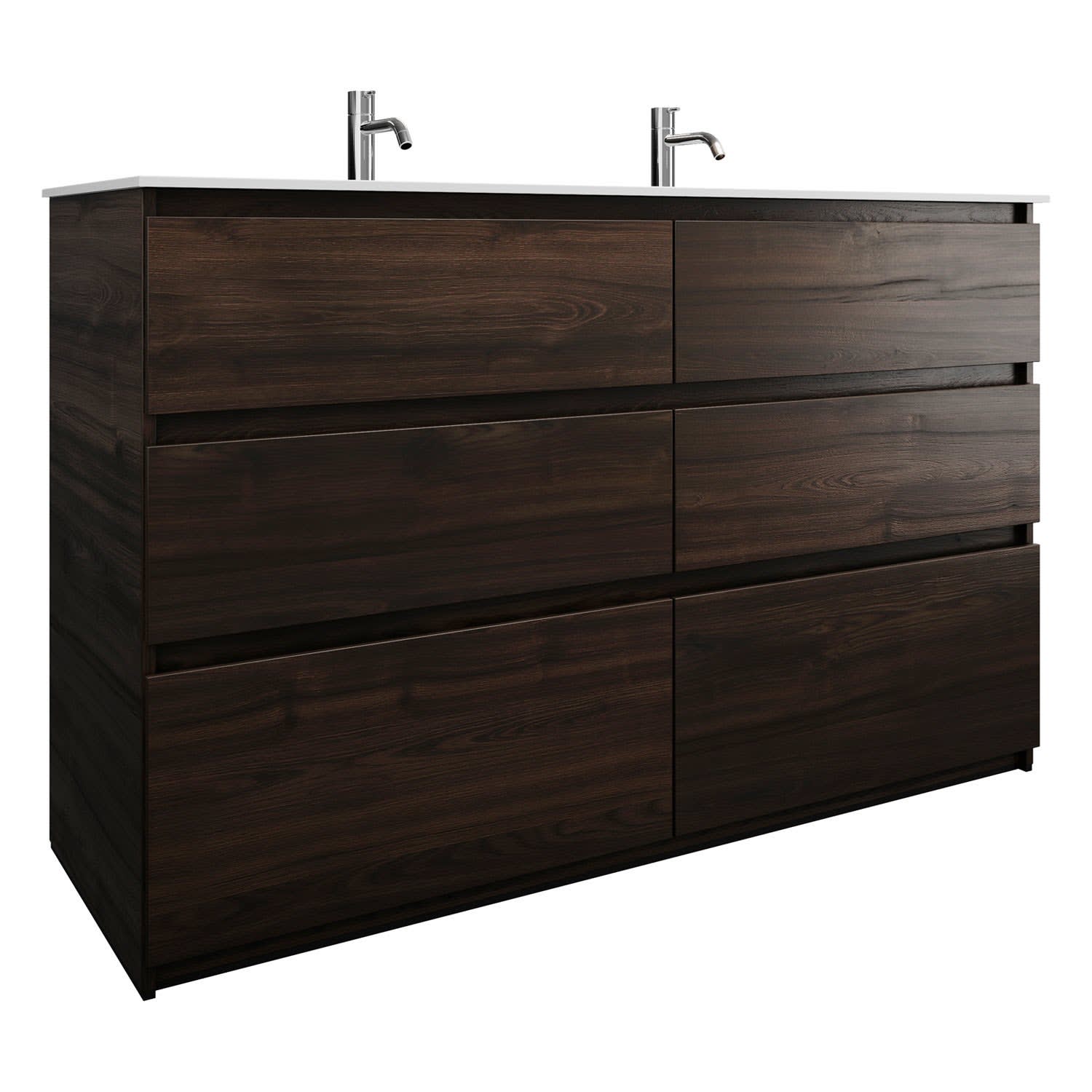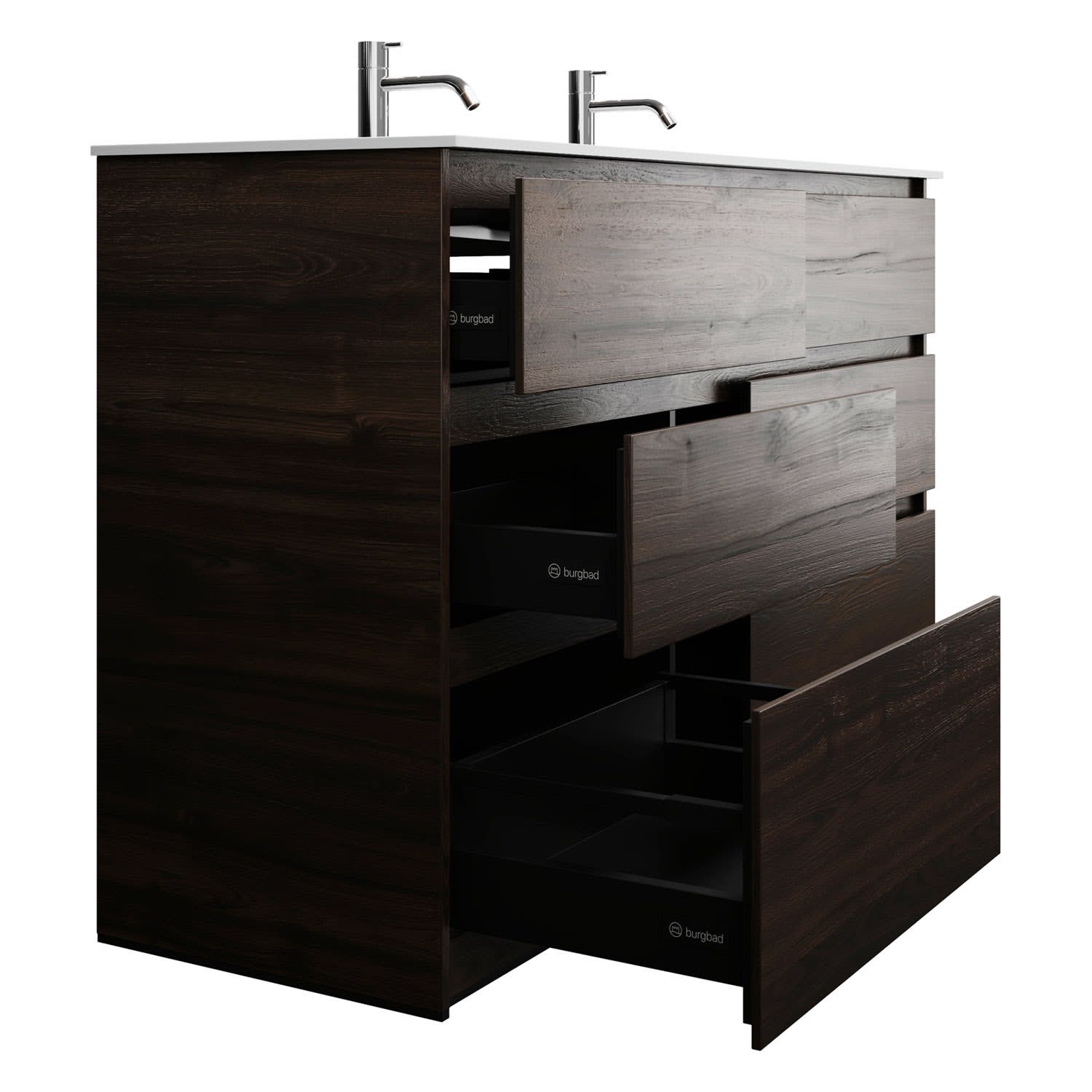 burgbad Lin20 Waschtischunterschrank mit Mineralguss-Waschtisch 142 cm, 6 Auszüge