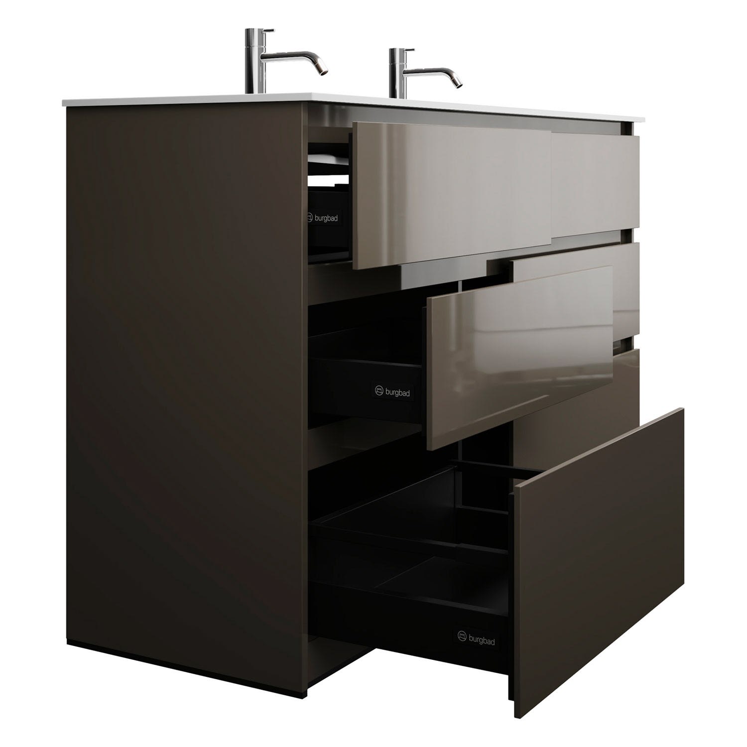 burgbad Lin20 Waschtischunterschrank mit Mineralguss-Waschtisch 142 cm, 6 Auszüge