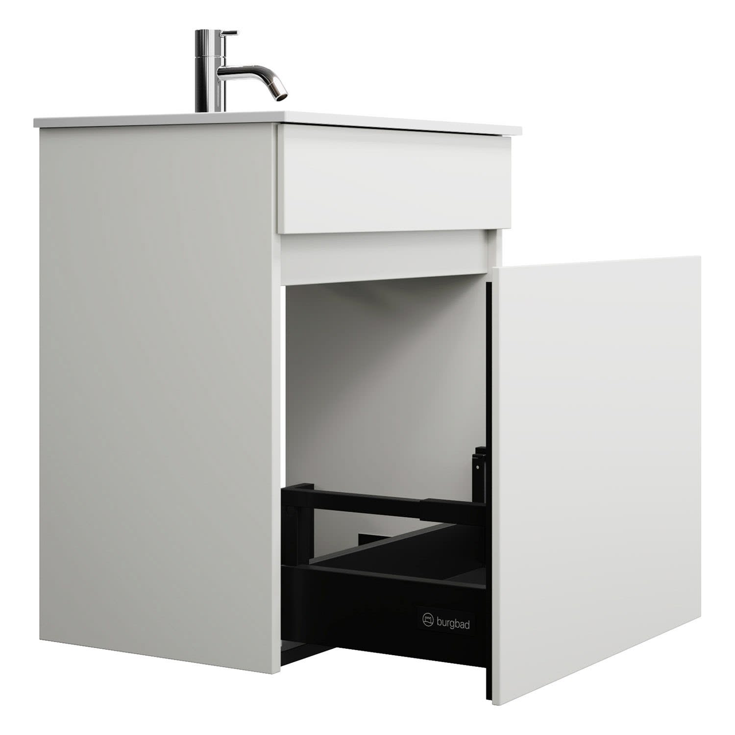 burgbad Lin20 Waschtischunterschrank mit Mineralguss-Waschtisch 52 cm, 1 Auszug