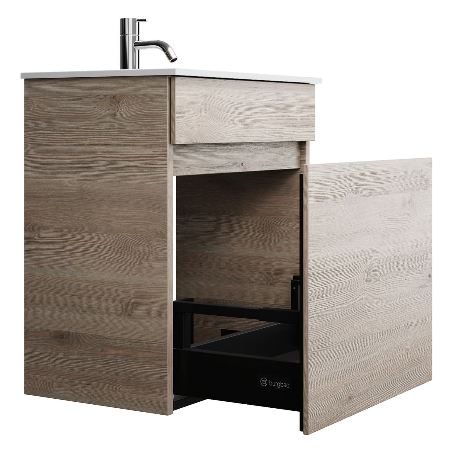 burgbad Lin20 Waschtischunterschrank mit Mineralguss-Waschtisch 52 cm, 1 Auszug