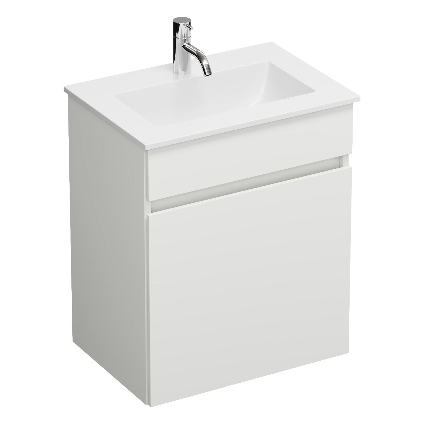 burgbad Lin20 Waschtischunterschrank mit Mineralguss-Waschtisch 52 cm, 1 Auszug