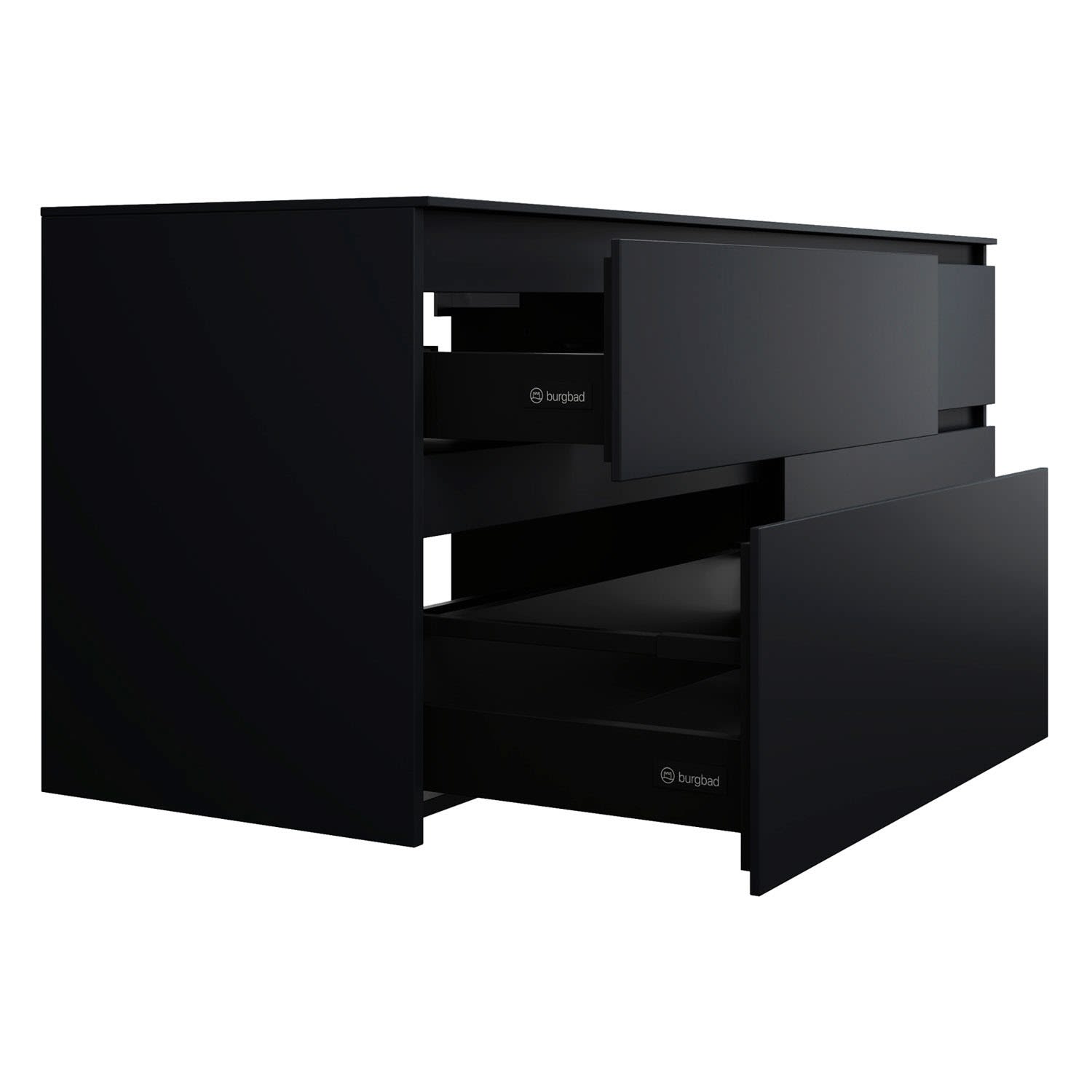 burgbad Lin20 Waschtischunterschrank mit Konsolenplatte 160 cm, 4 Auszüge, Beckenausschnitt links