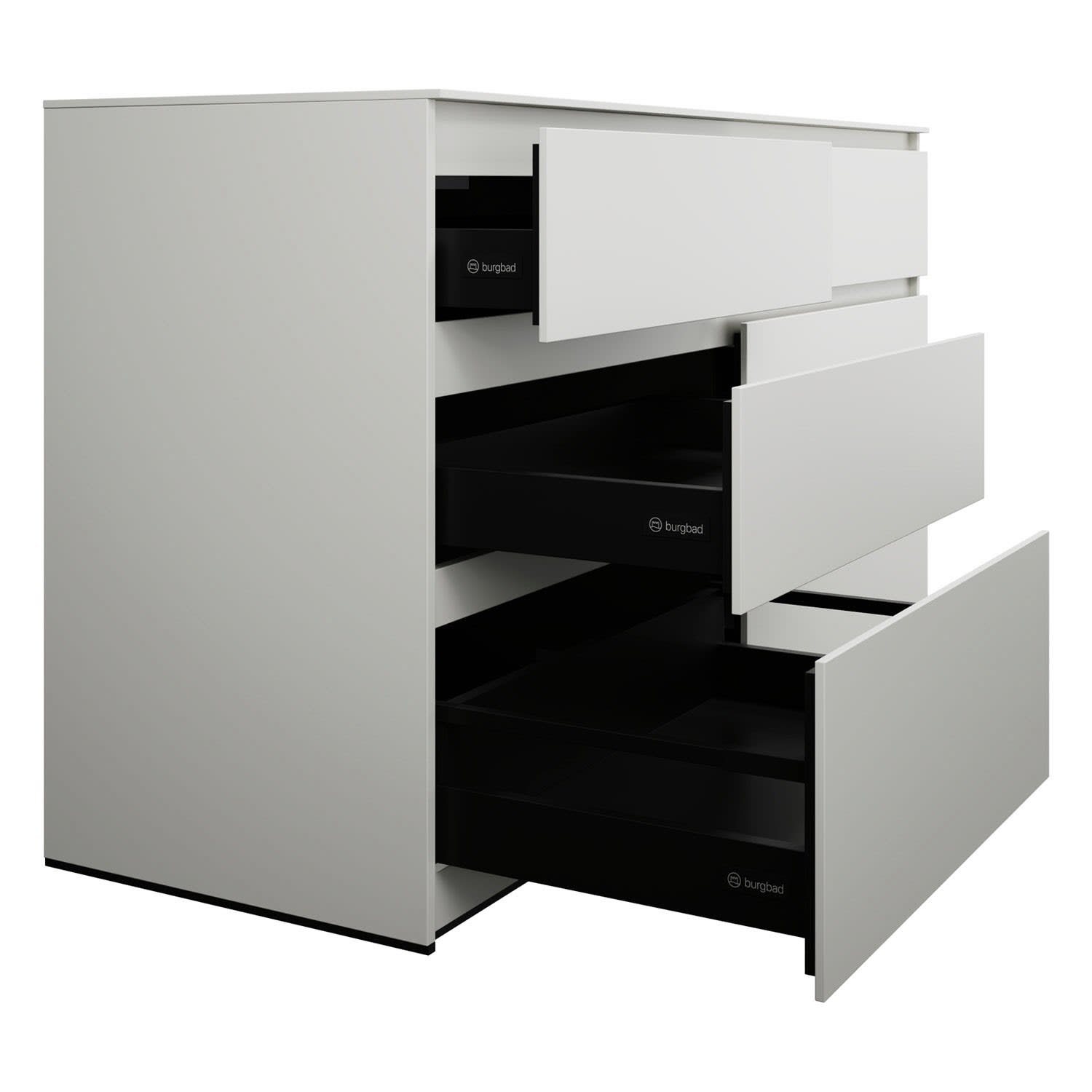 - Vollauszug mit geräuscharmem Selbsteinzugsmechanismus inklusive Anschlagdämpfung (Silent System)