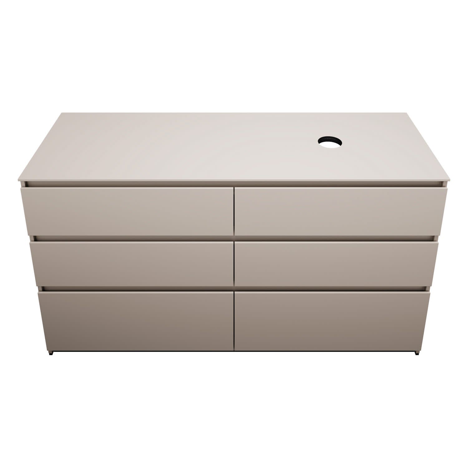 burgbad Lin20 Waschtischunterschrank mit Konsolenplatte 160 cm, 6 Auszüge, Beckenausschnitt rechts