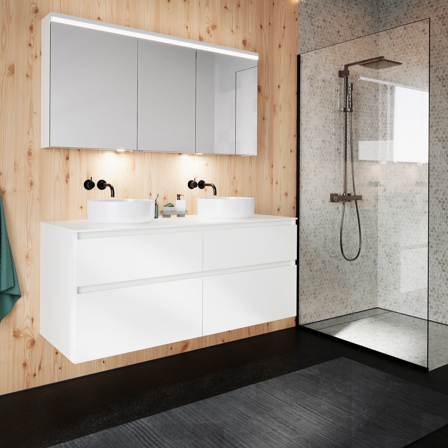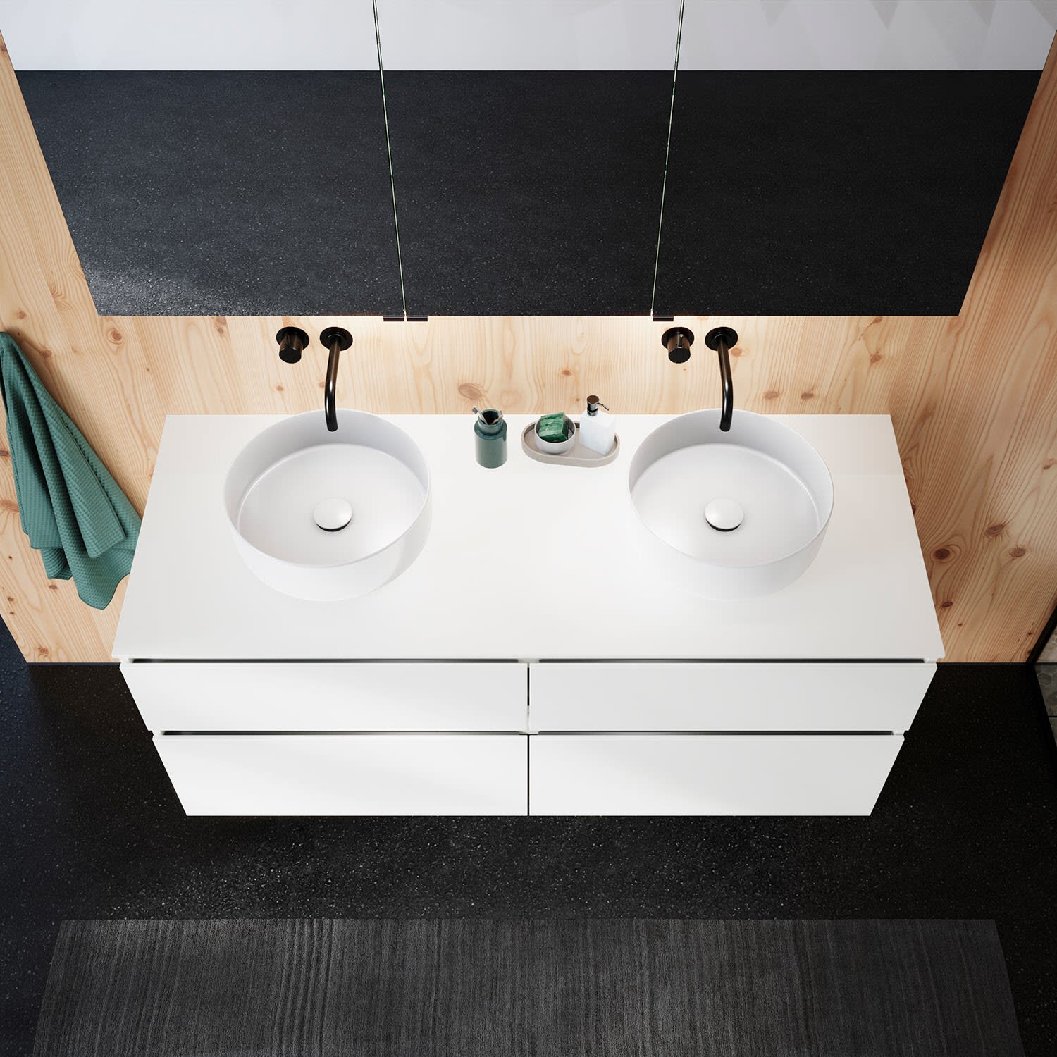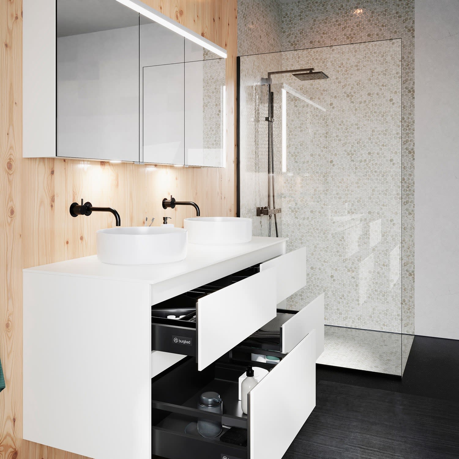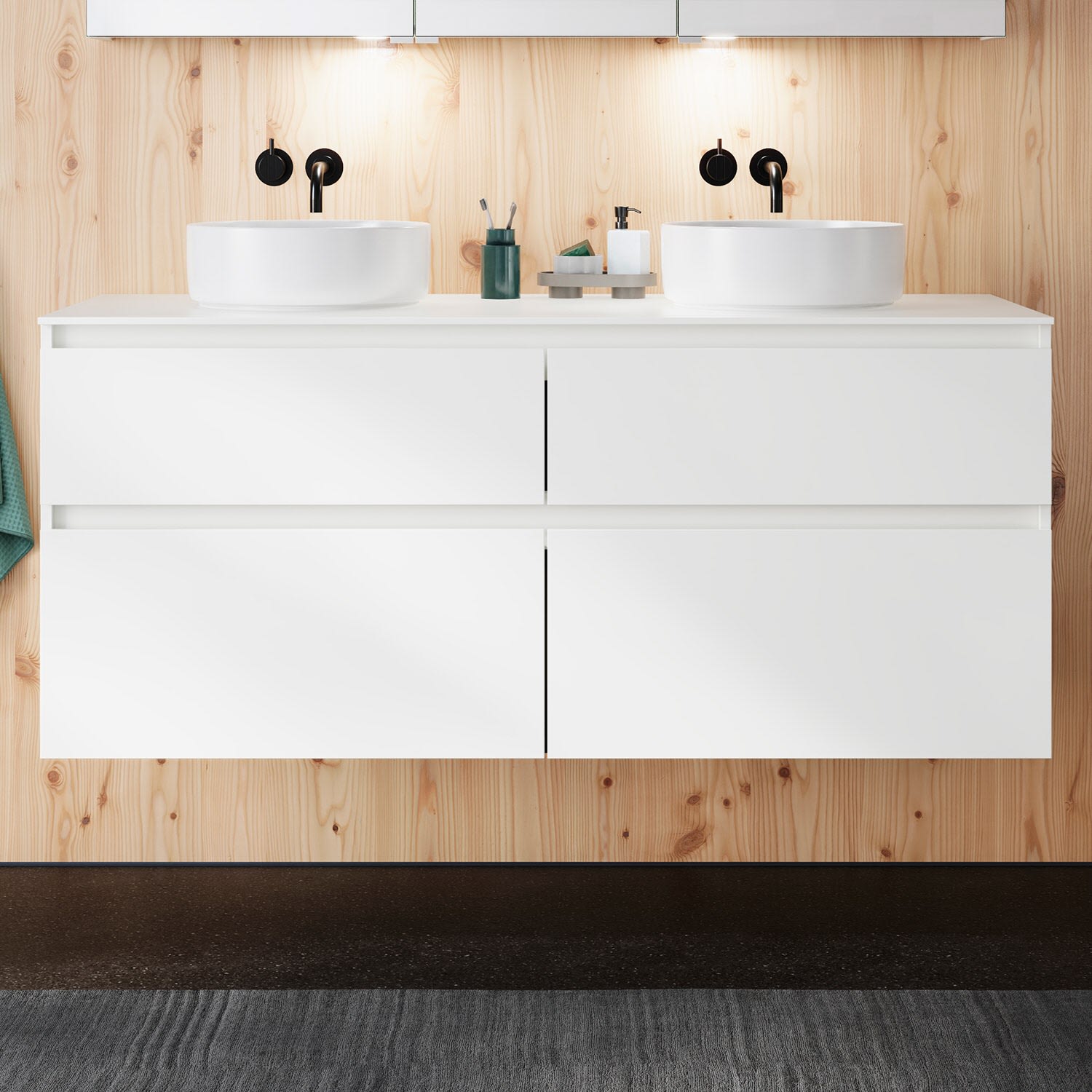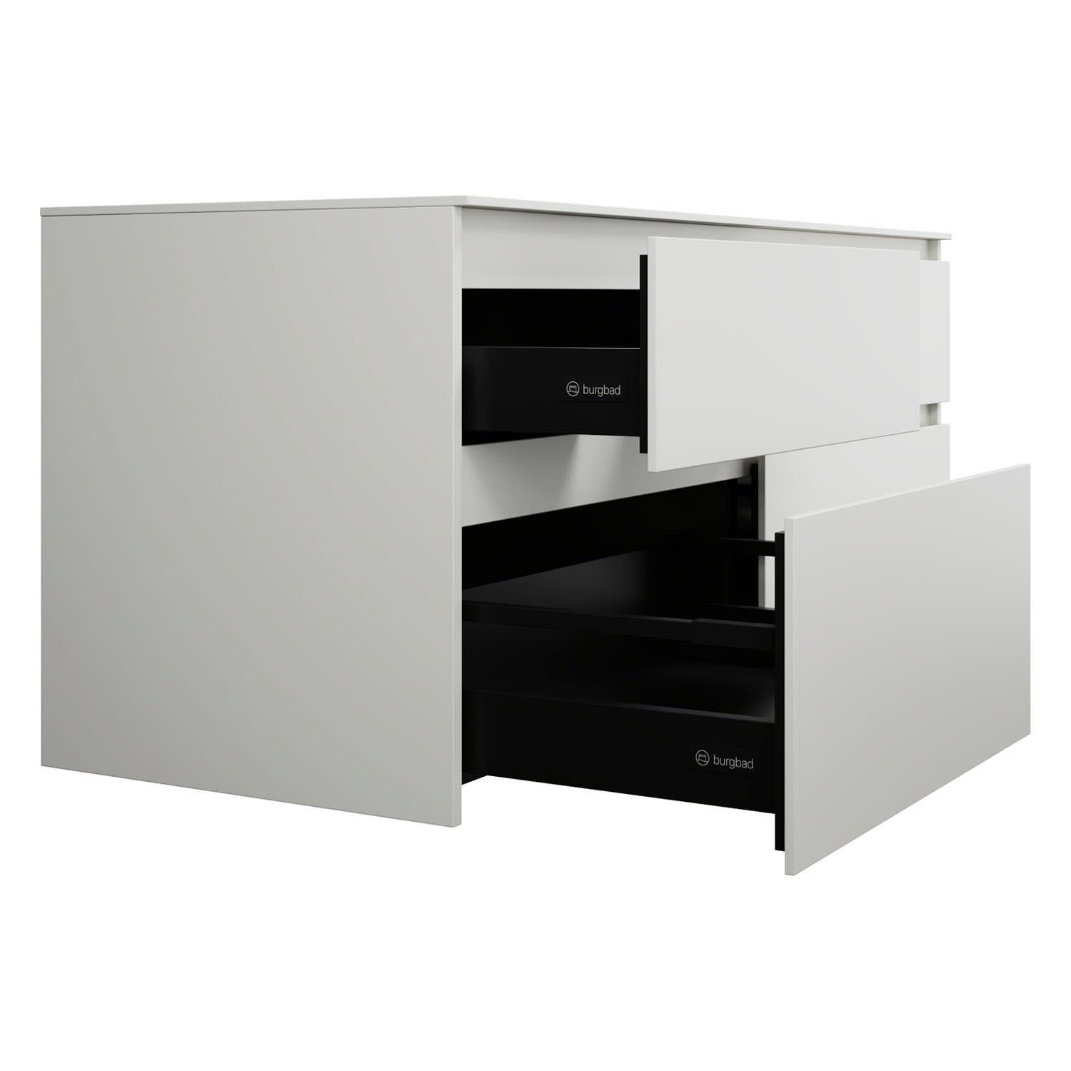 burgbad Lin20 Waschtischunterschrank mit Konsolenplatte 140 cm, 4 Auszüge, Beckenausschnitt links und rechts