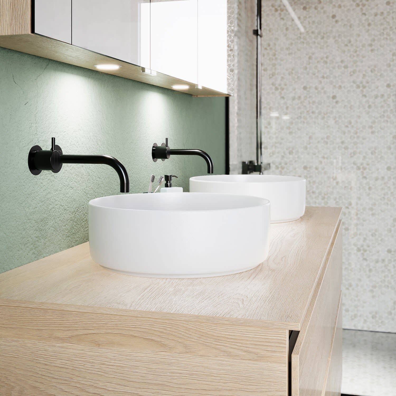 Die Waschtischplatte wird ohne Armaturbohrung geliefert. Armaturbohrungen müssen bauseits vorgenommen werden.
