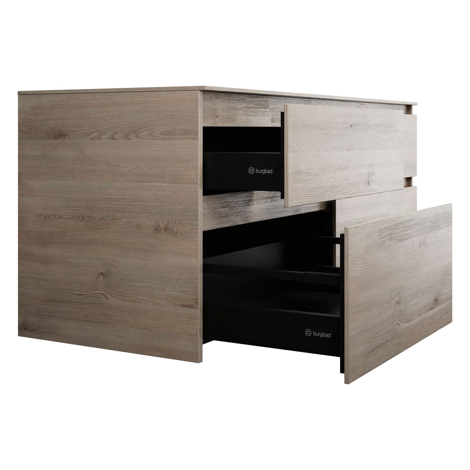 burgbad Lin20 Waschtischunterschrank mit Konsolenplatte 140 cm, 4 Auszüge, Beckenausschnitt links und rechts