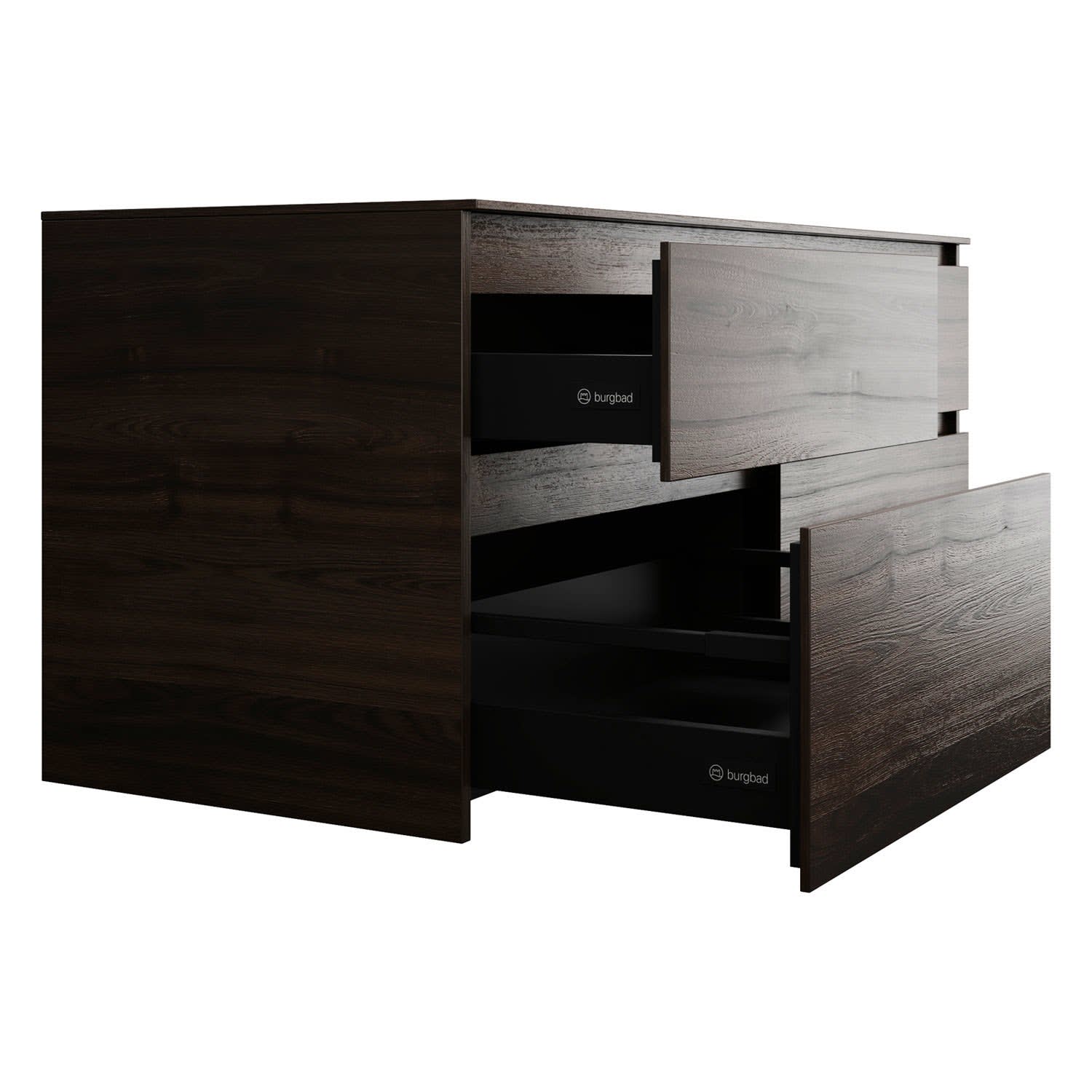 burgbad Lin20 Waschtischunterschrank mit Konsolenplatte 140 cm, 4 Auszüge, Beckenausschnitt links und rechts