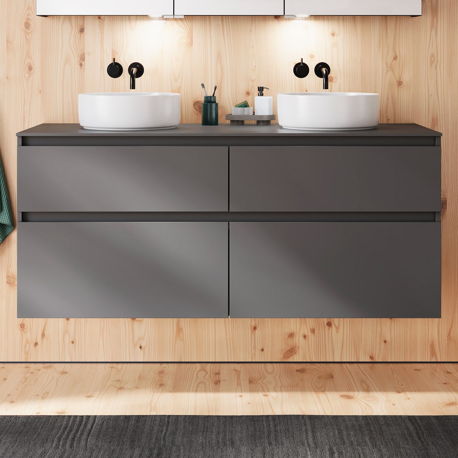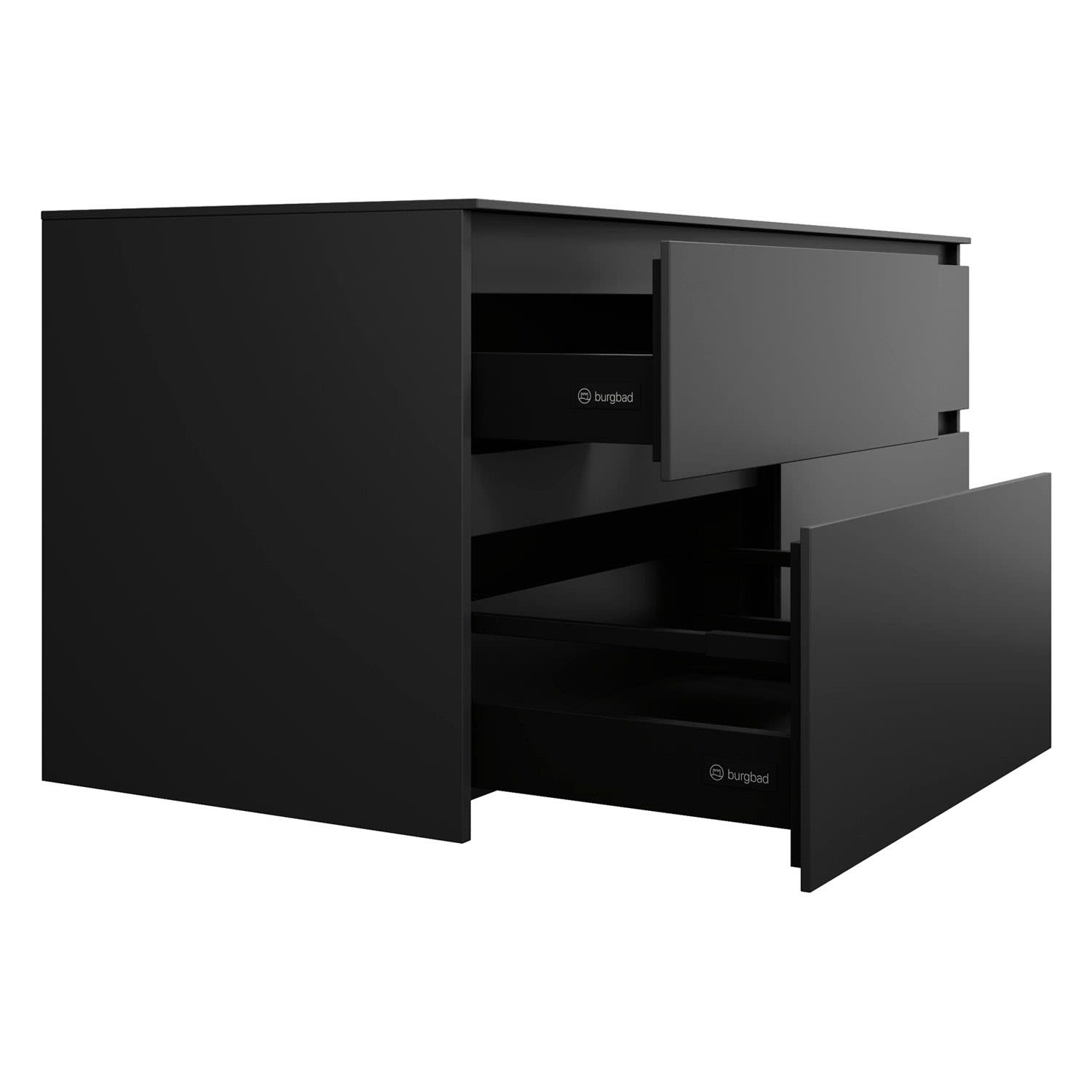 burgbad Lin20 Waschtischunterschrank mit Konsolenplatte 140 cm, 4 Auszüge, Beckenausschnitt links und rechts