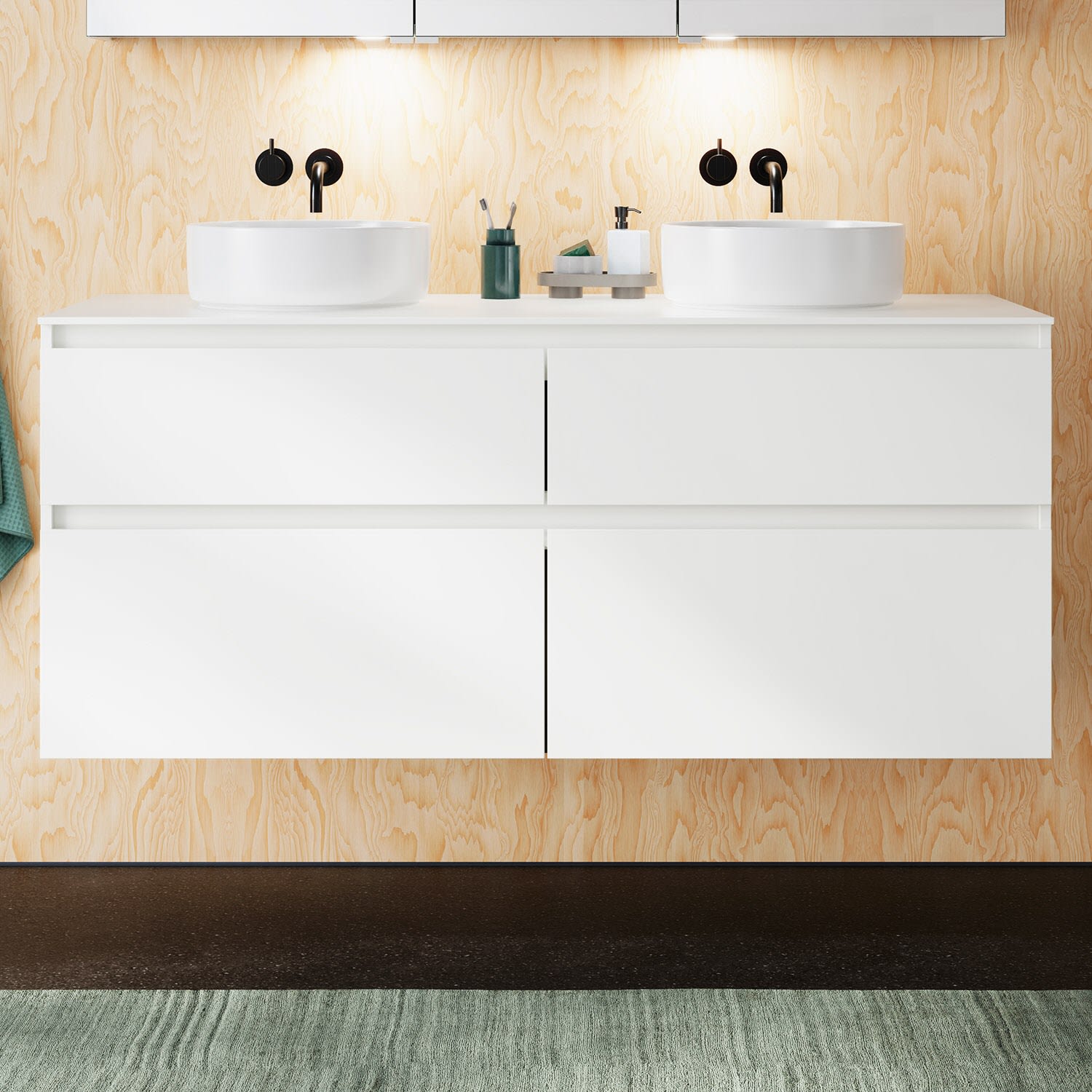 burgbad Lin20 Waschtischunterschrank mit Konsolenplatte 140 cm, 4 Auszüge, Beckenausschnitt links und rechts