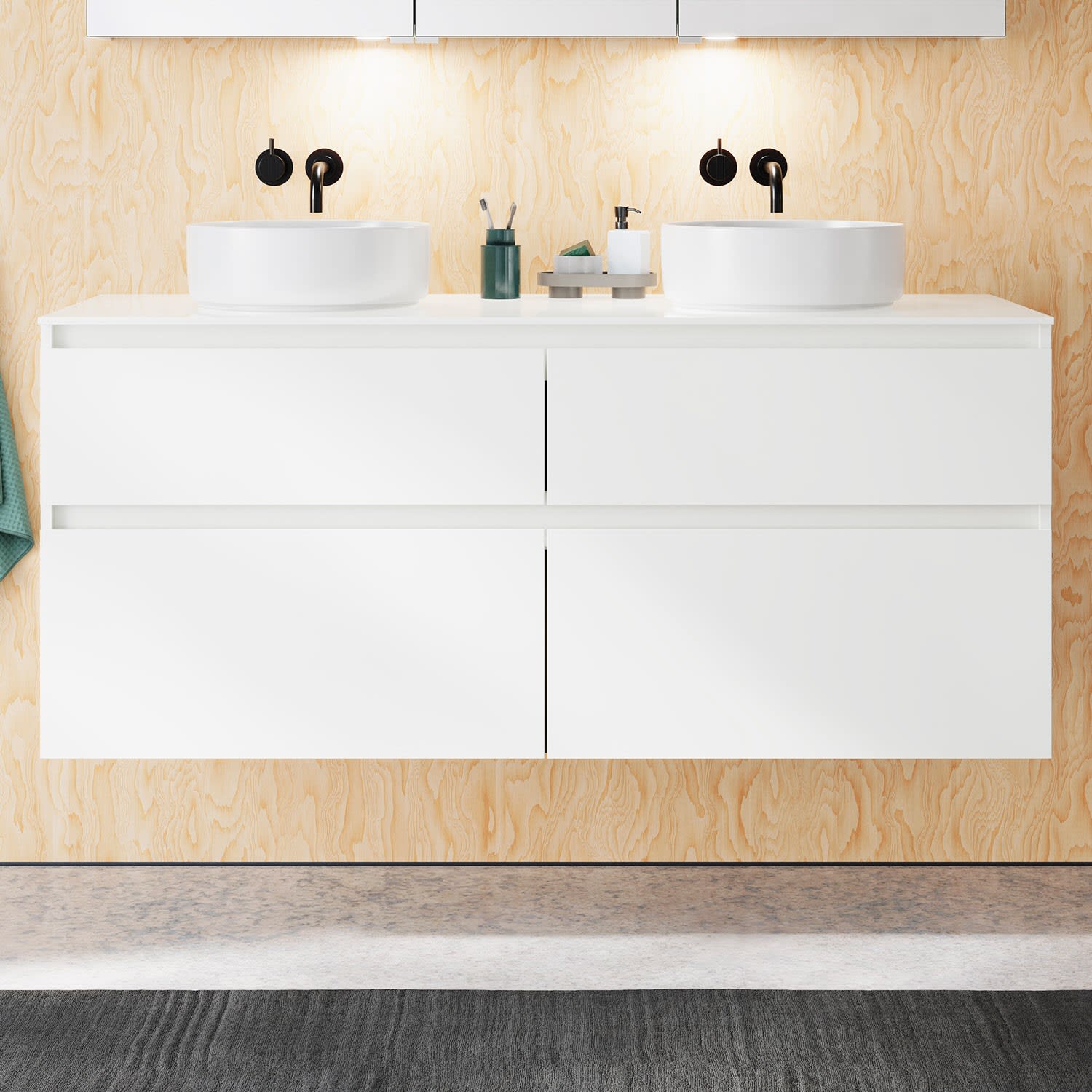 burgbad Lin20 Waschtischunterschrank mit Konsolenplatte 140 cm, 4 Auszüge, Beckenausschnitt links und rechts